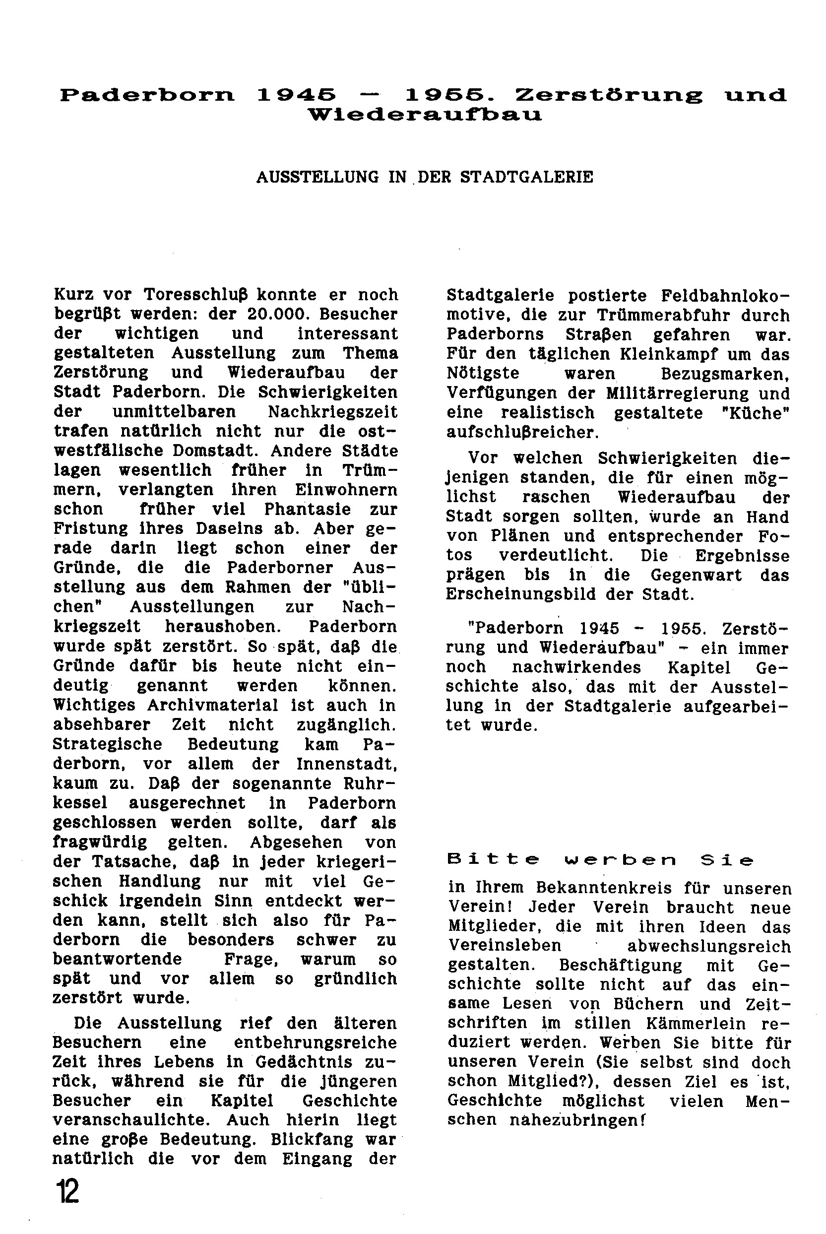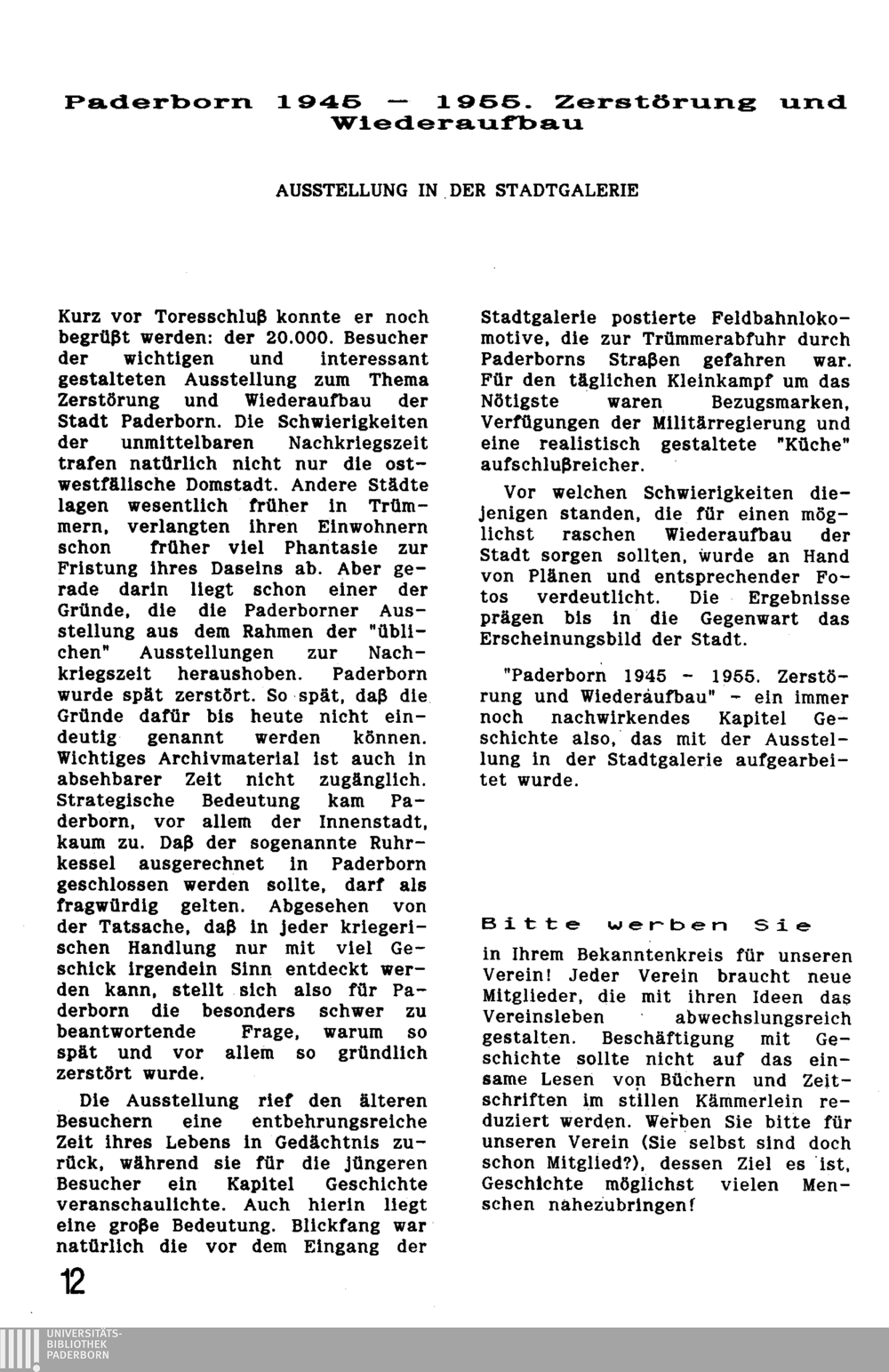 Paderborn 1945 - 1955. Zerstörung und Wiederaufbau - Ausstellung in der Stadtgalerie