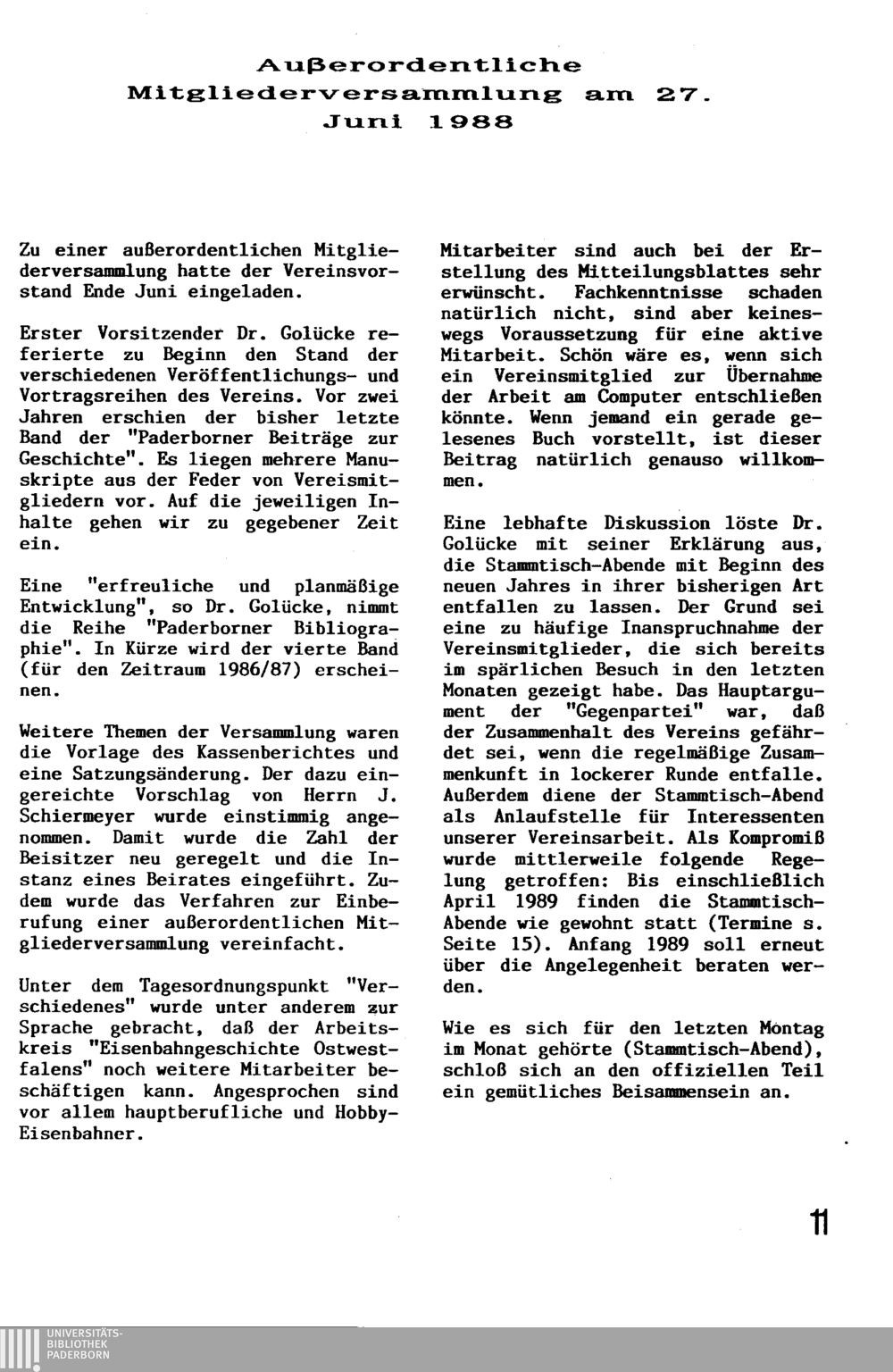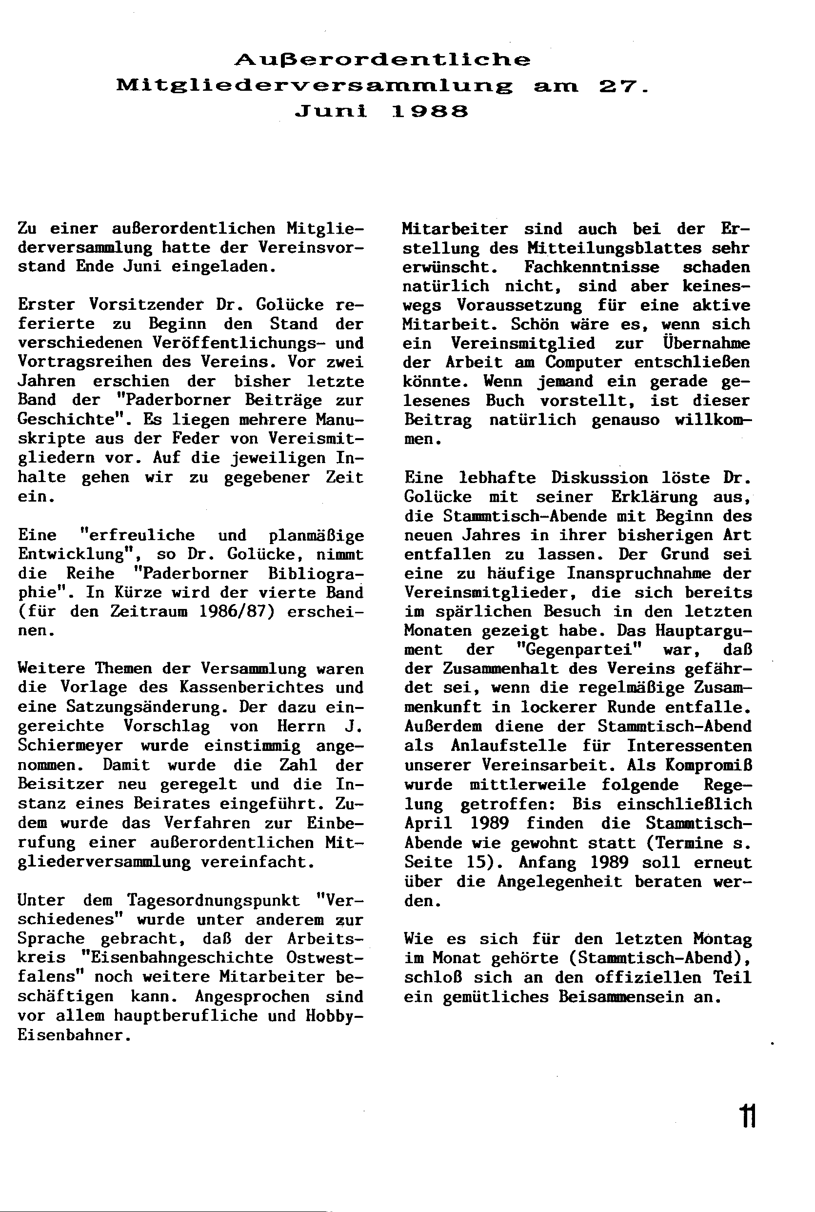Außerordentliche Mitgliederversammlung am 27. Juni 1988