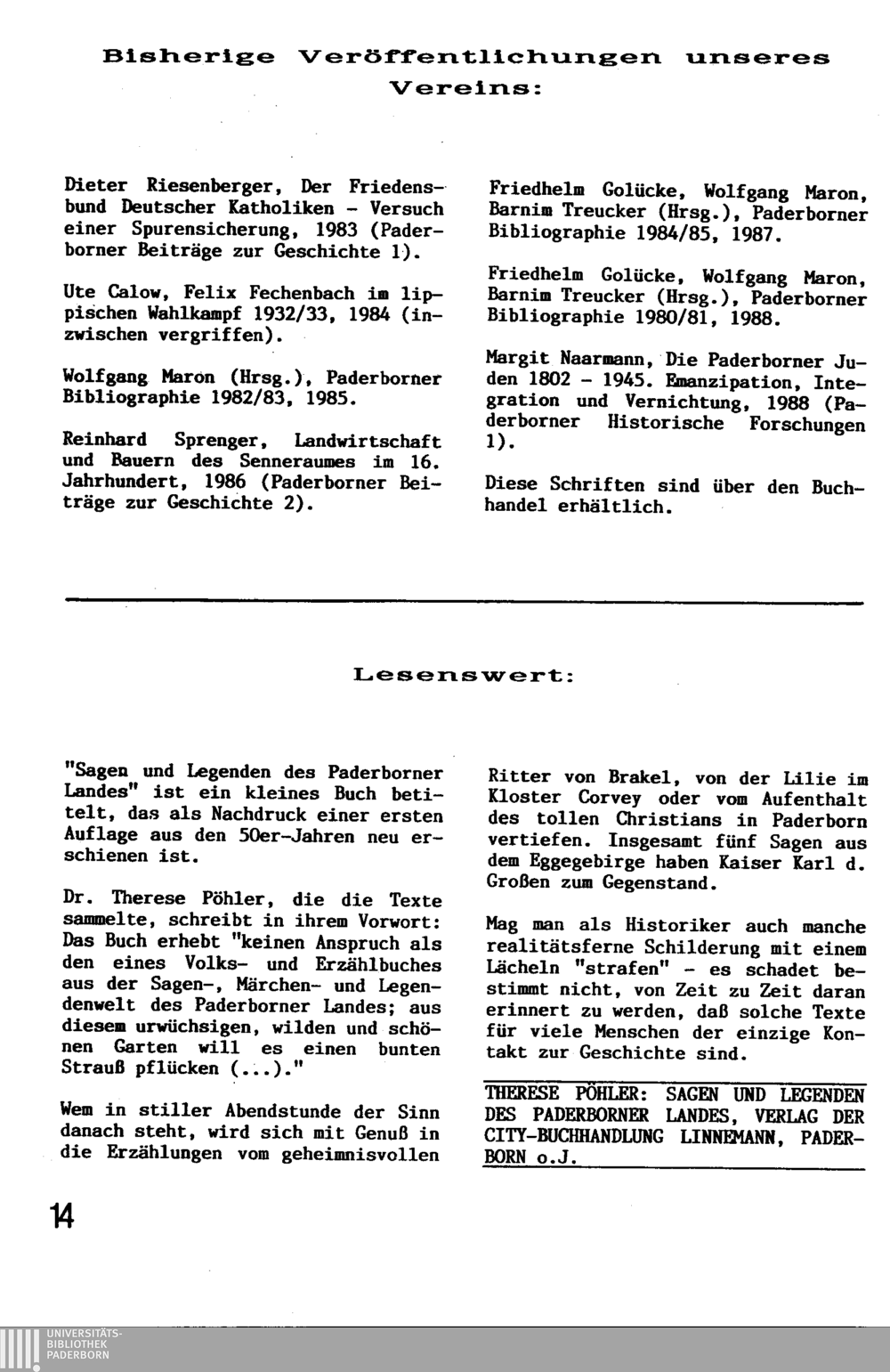 Paderborner Bibliographie wird ergänzt: Zeitraum vor 1945