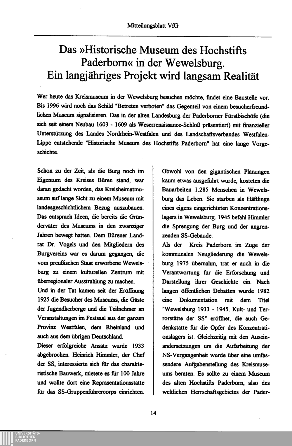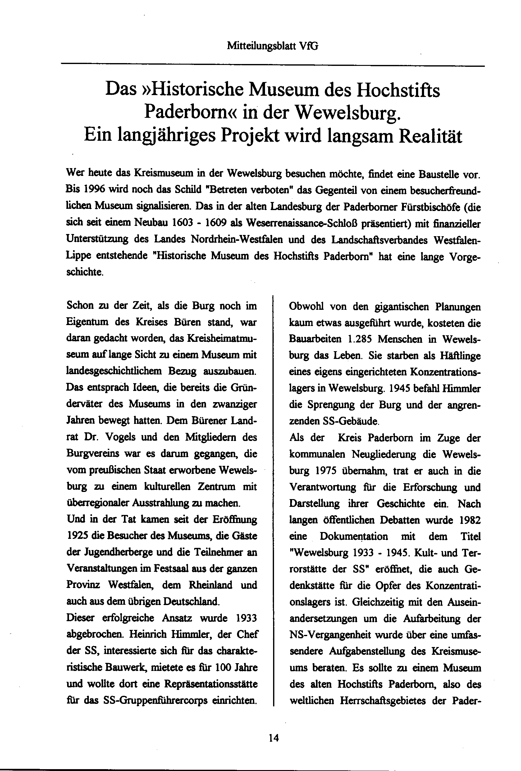Das "Historische Musem des Hochstifts Paderborn" in der Wewelsburg. Ein langjähriges[...]