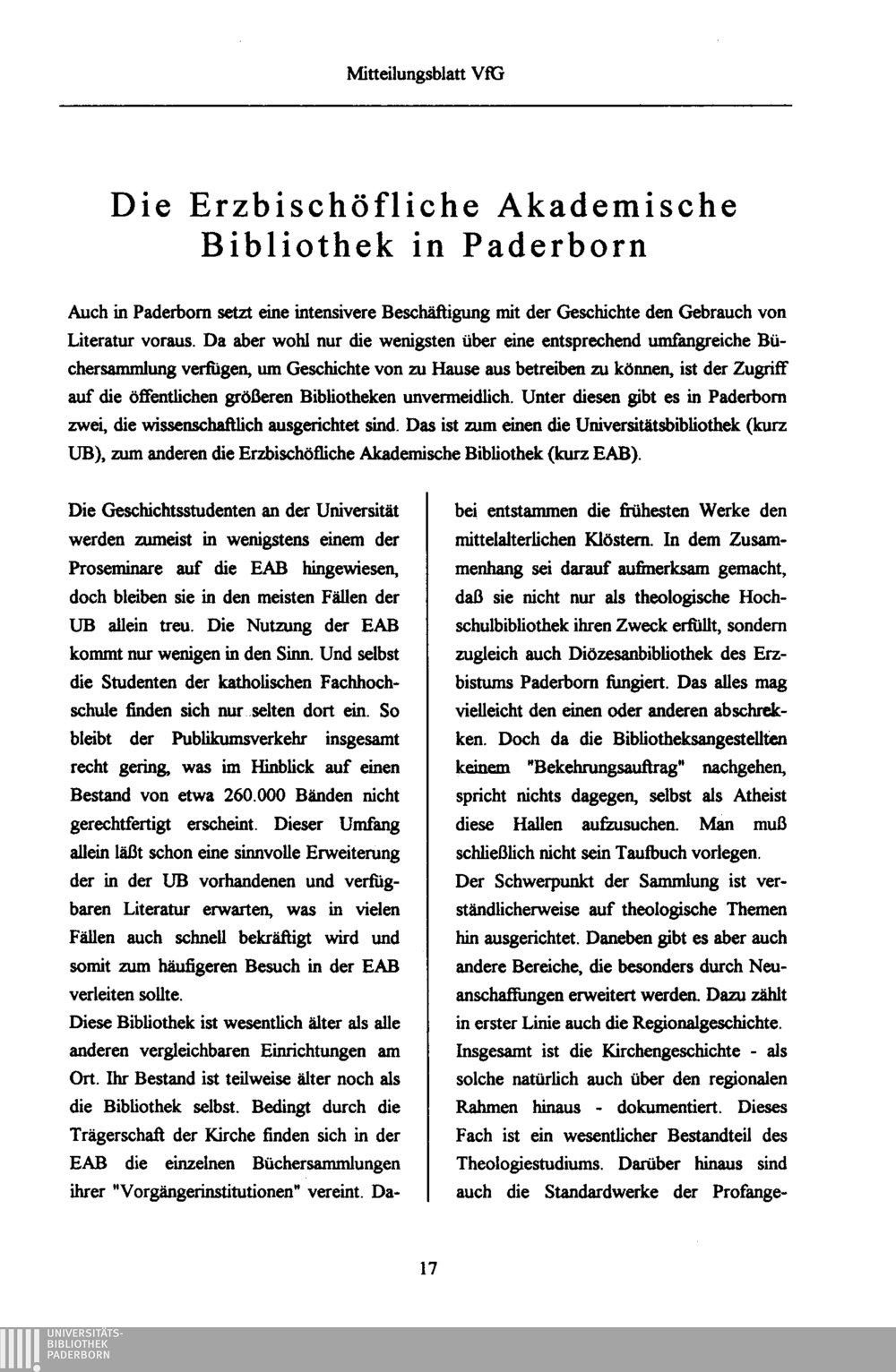 Die Erzbischöfliche Akademische Bibliothek in Paderborn