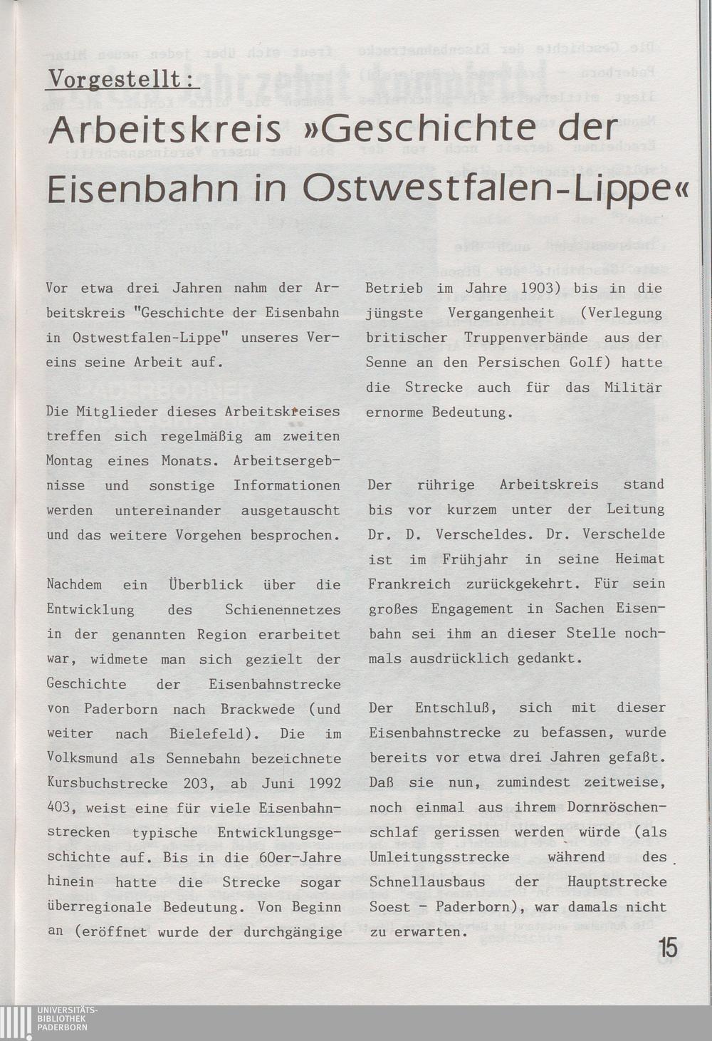 Vorgestellt: Arbeitskreis "Geschichte der Eisenbahn in Ostwestfalen-lippe"