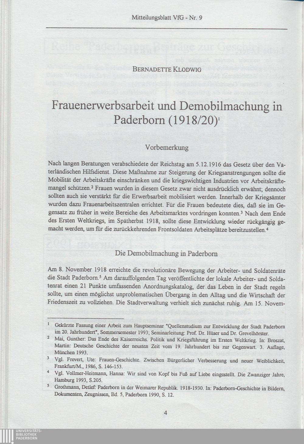Frauenerwerbsarbeit und Demobilmachung in Paderborn (1918/20)