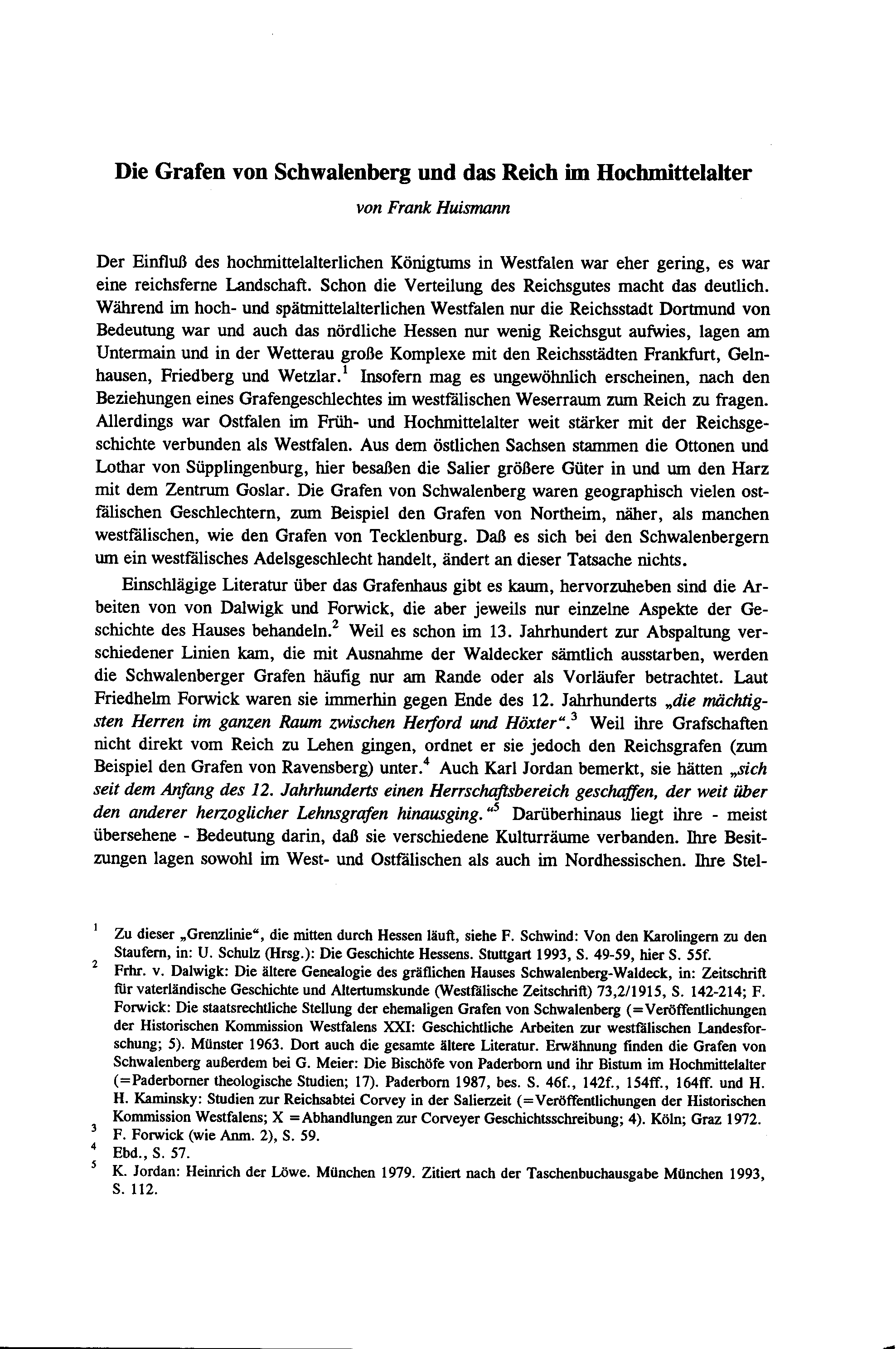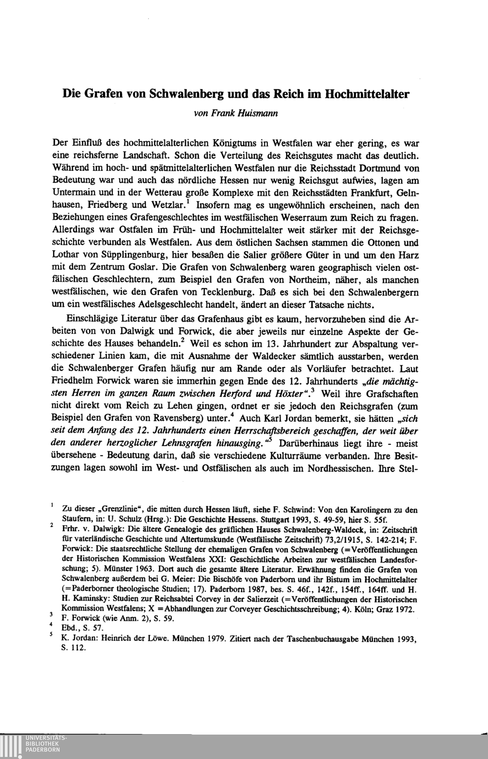 Frank Huismann, Die Grafen von Schwalenberg und das Reich im Hochmittelalter