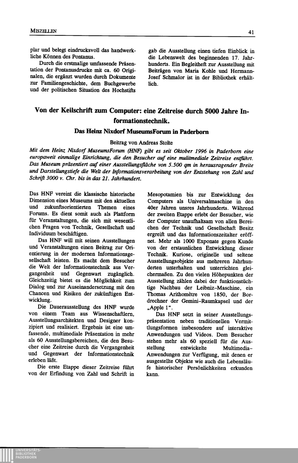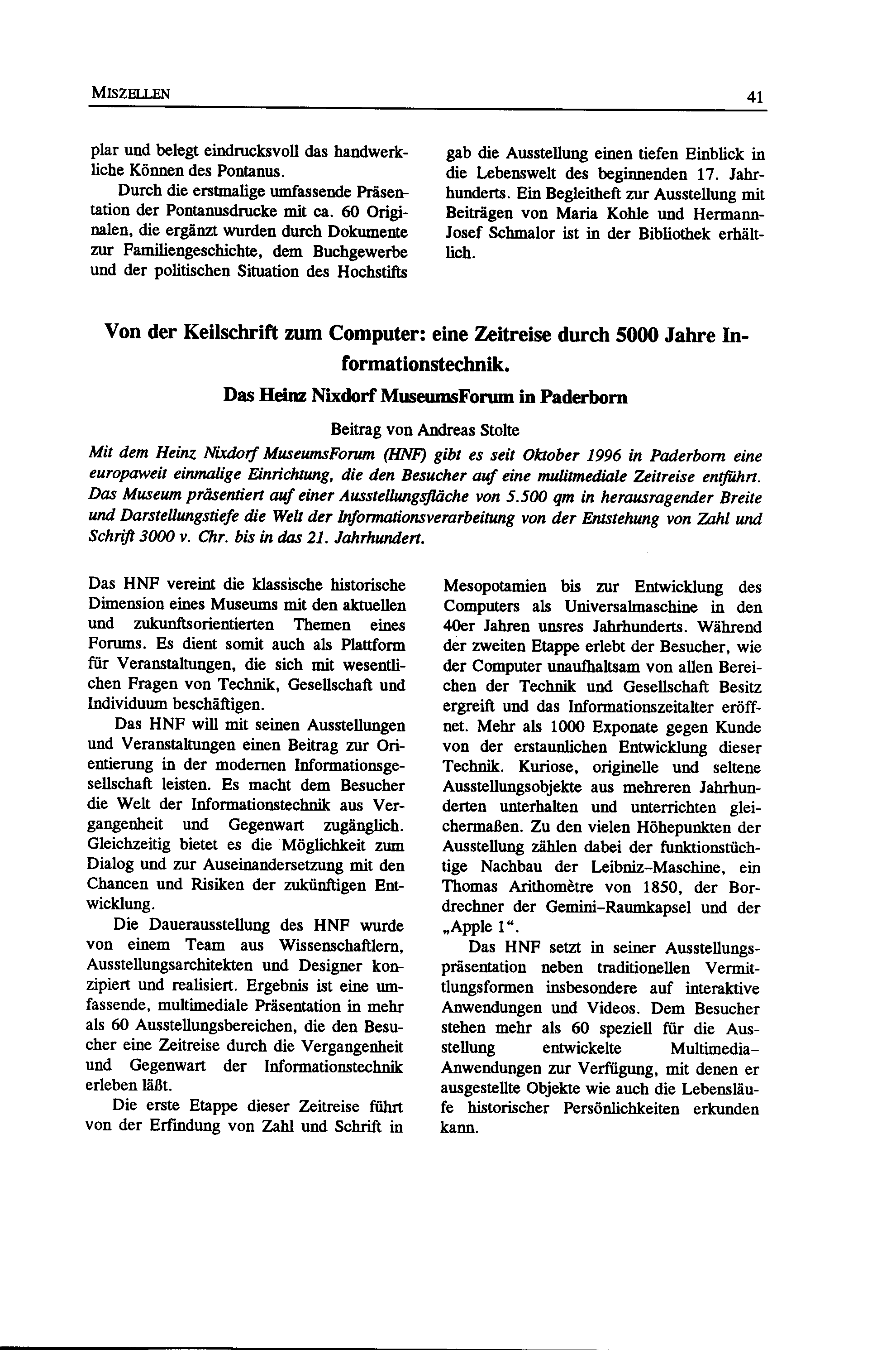 Andreas Stolte, Von der Keilschrift zum Computer: eine Zeitreise durch 5000 Jahre Informationstechnik. Das Heinz Nixdorf MuseumsForum in Paderborn