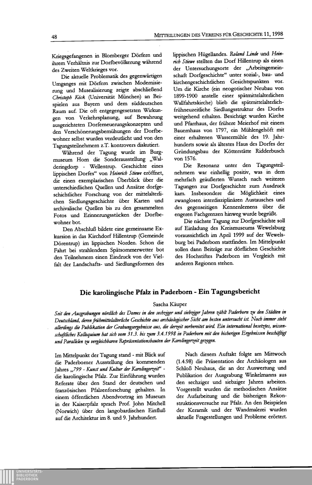 Mitteilungen des Vereins für Geschichte an der Universität-GH Paderborn