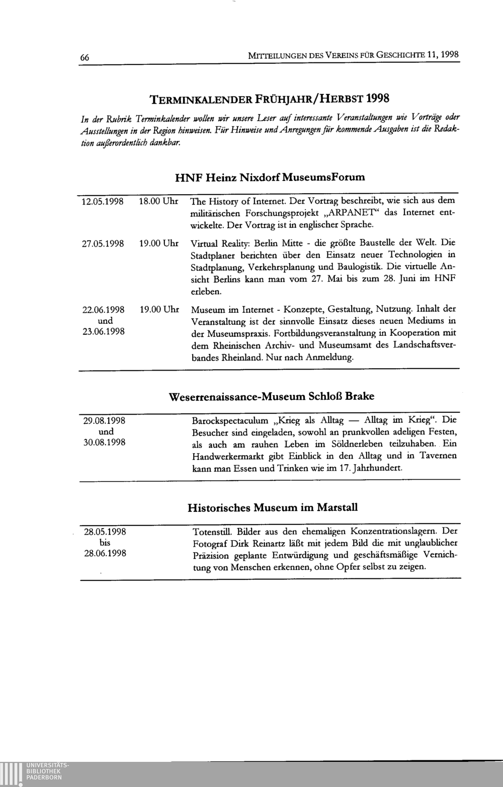 Mitteilungen des Vereins für Geschichte an der Universität-GH Paderborn