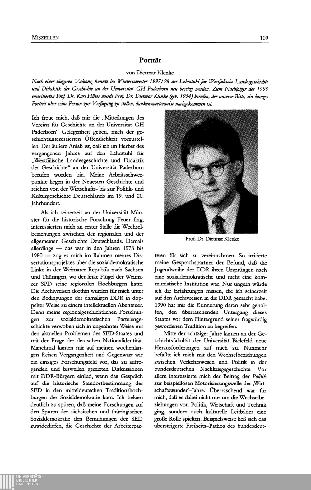 Mitteilungen des Vereins für Geschichte an der Universität-GH Paderborn