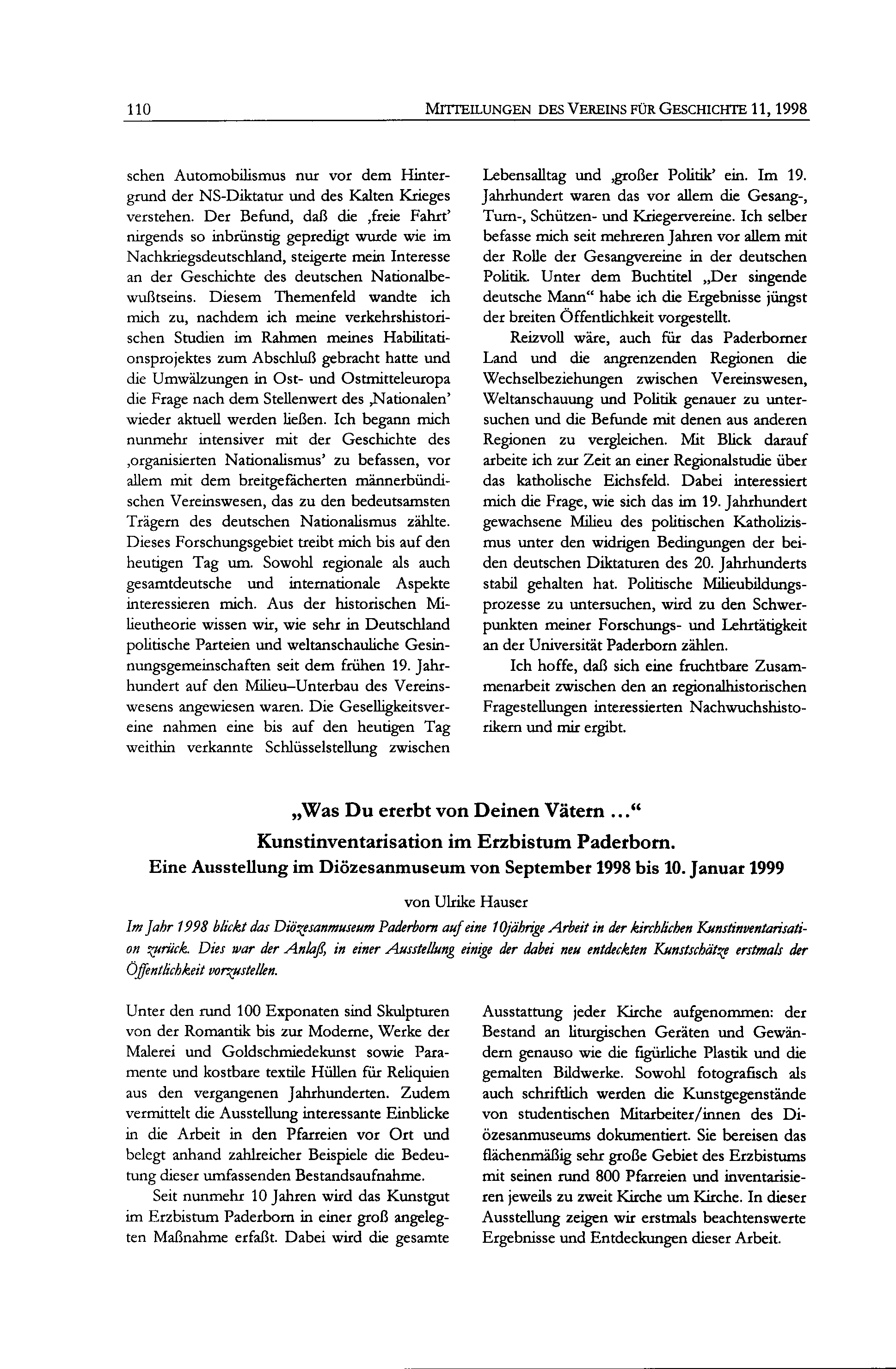 Ulrike Hauser, "Was Du ererbt von Deinen Vätern ..." Kunstinventarisation im Erzbistum Paderborn. Eine Ausstellung im Diözesanmuseum von September 1998 bis 10. Januar 1999