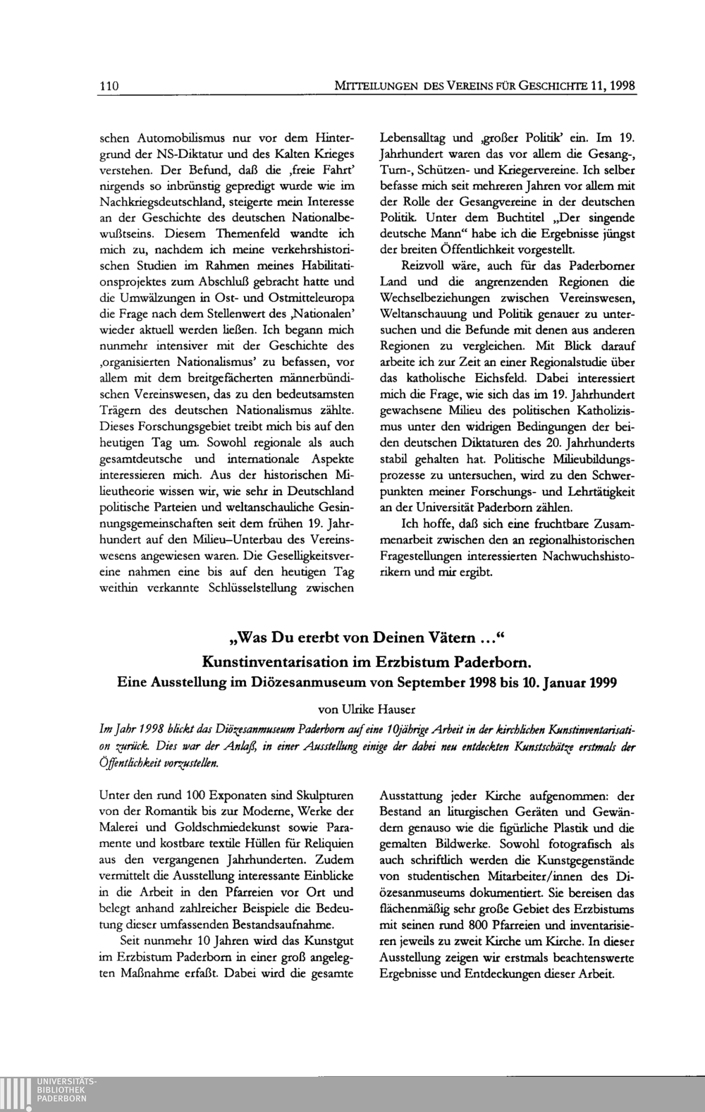 Mitteilungen des Vereins für Geschichte an der Universität-GH Paderborn