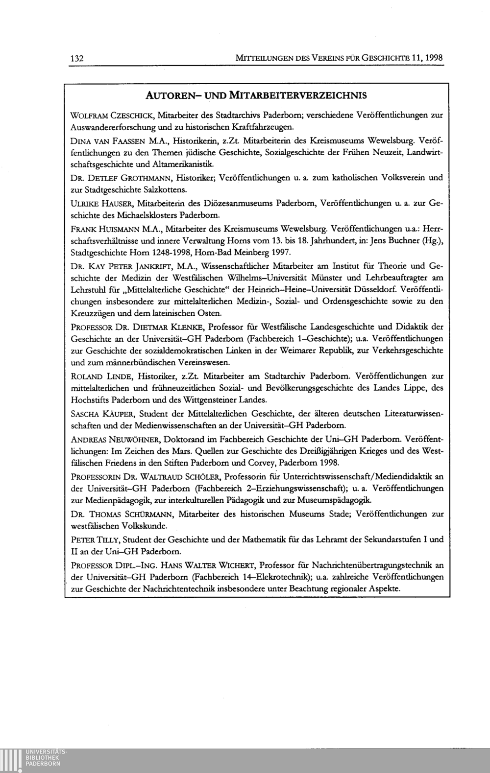 Mitteilungen des Vereins für Geschichte an der Universität-GH Paderborn