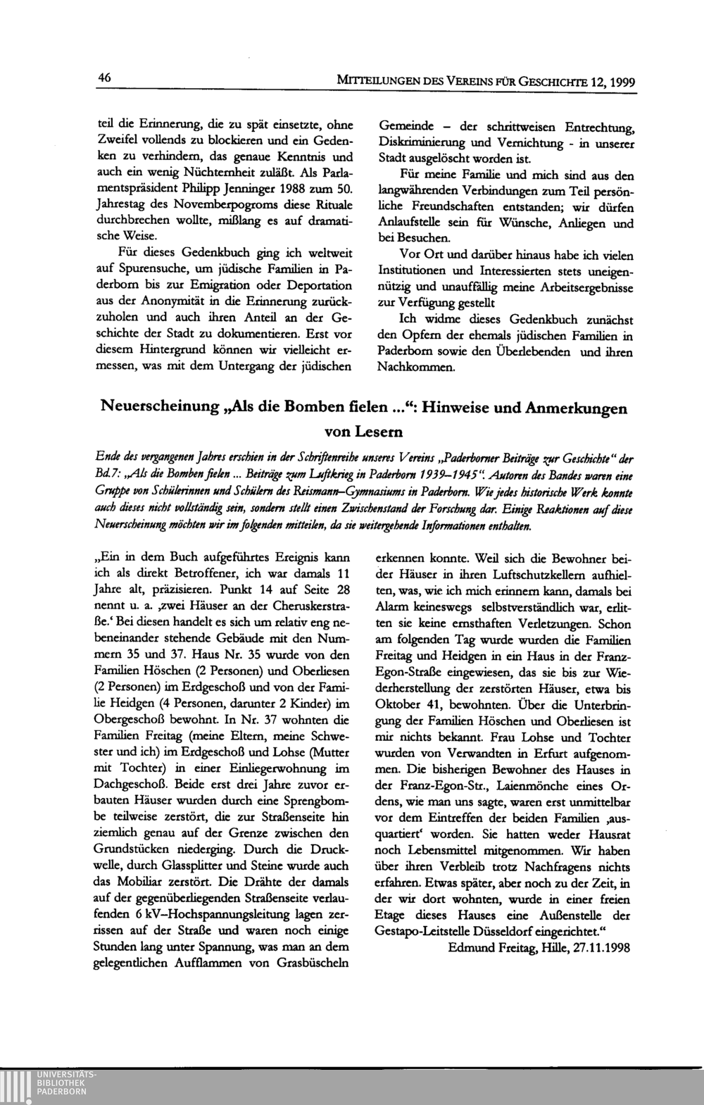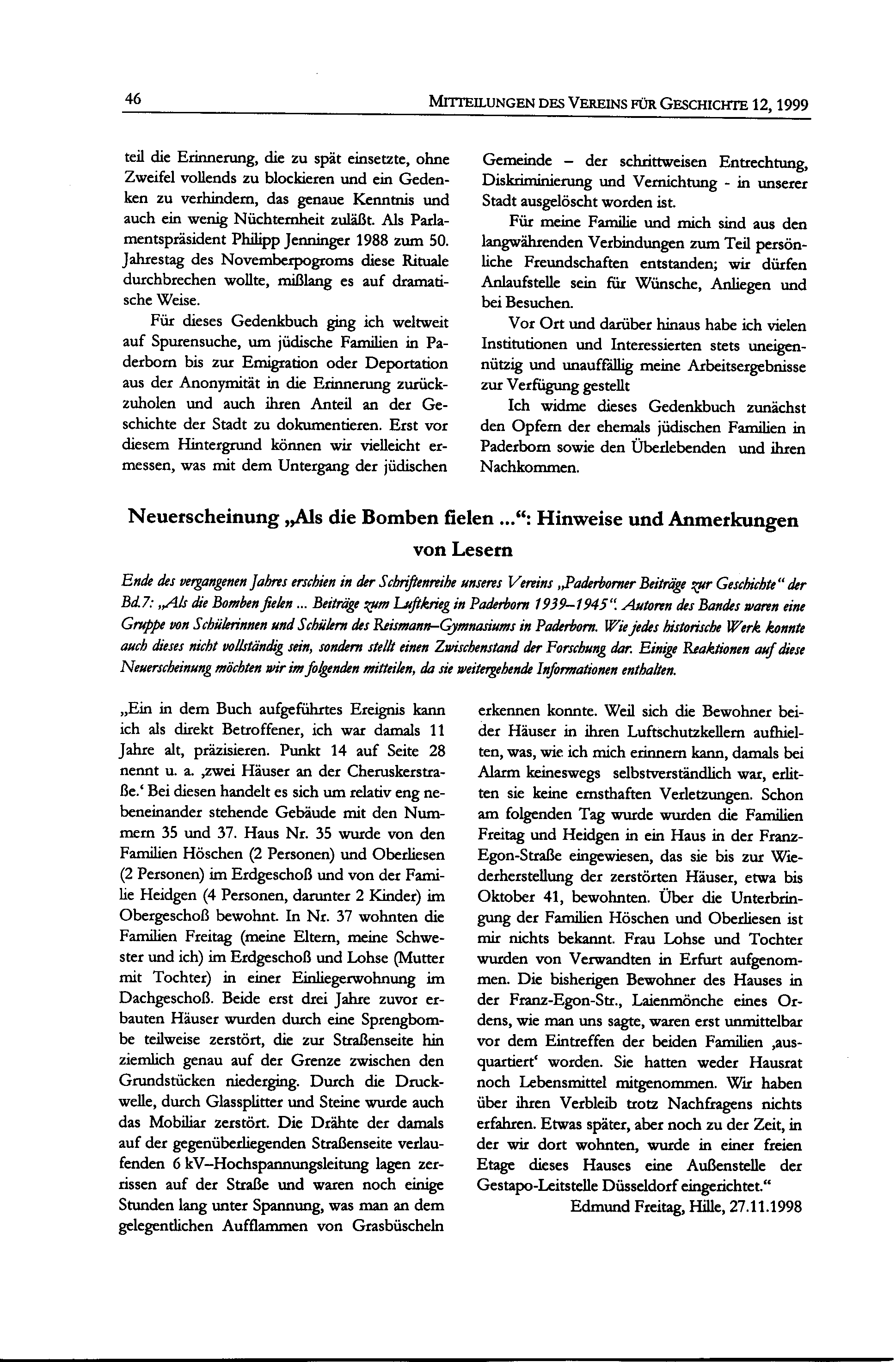 Neuerscheinung "Als die Bomben fielen ...": Hinweise und Anmerkungen von Lesern