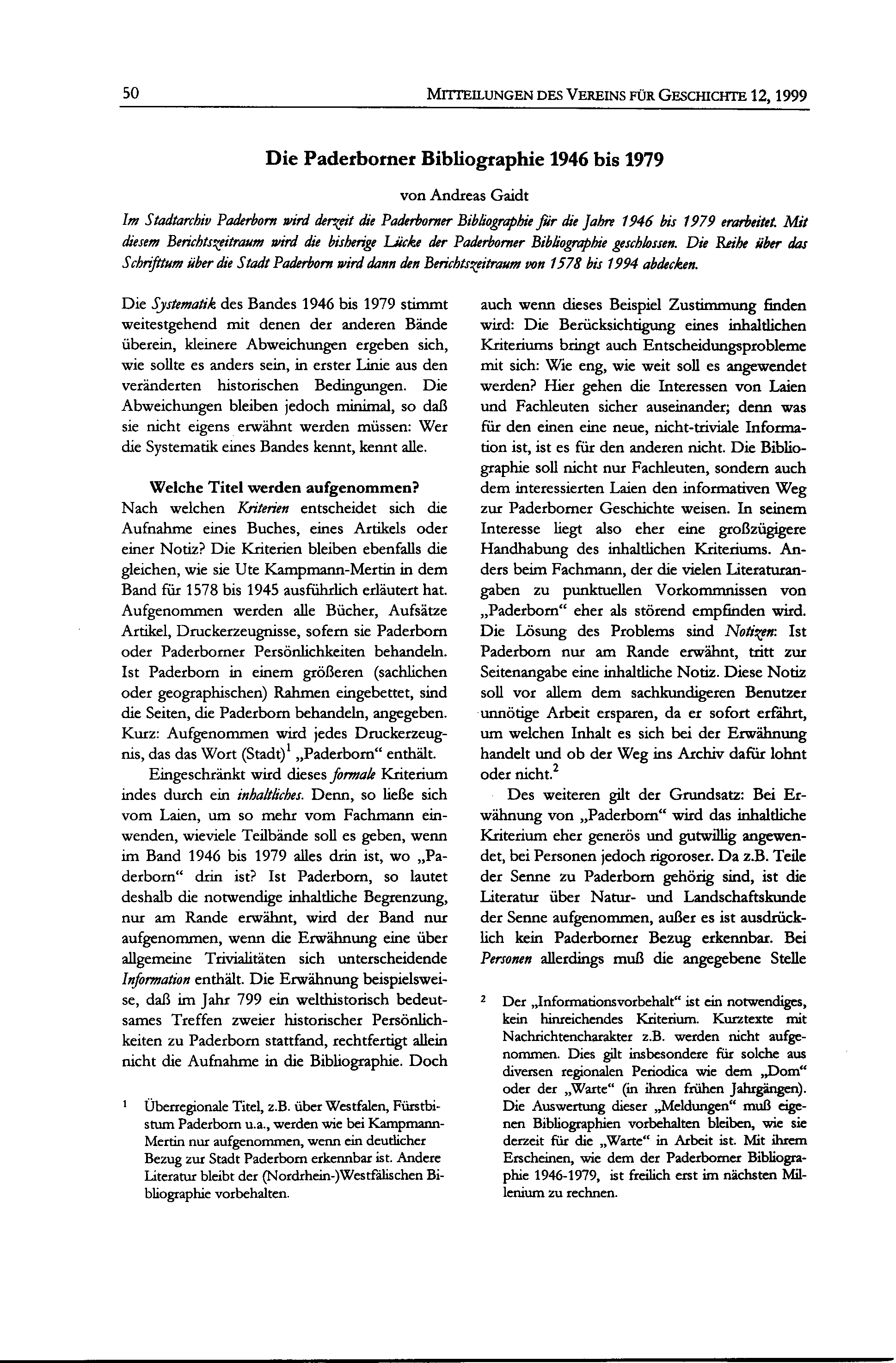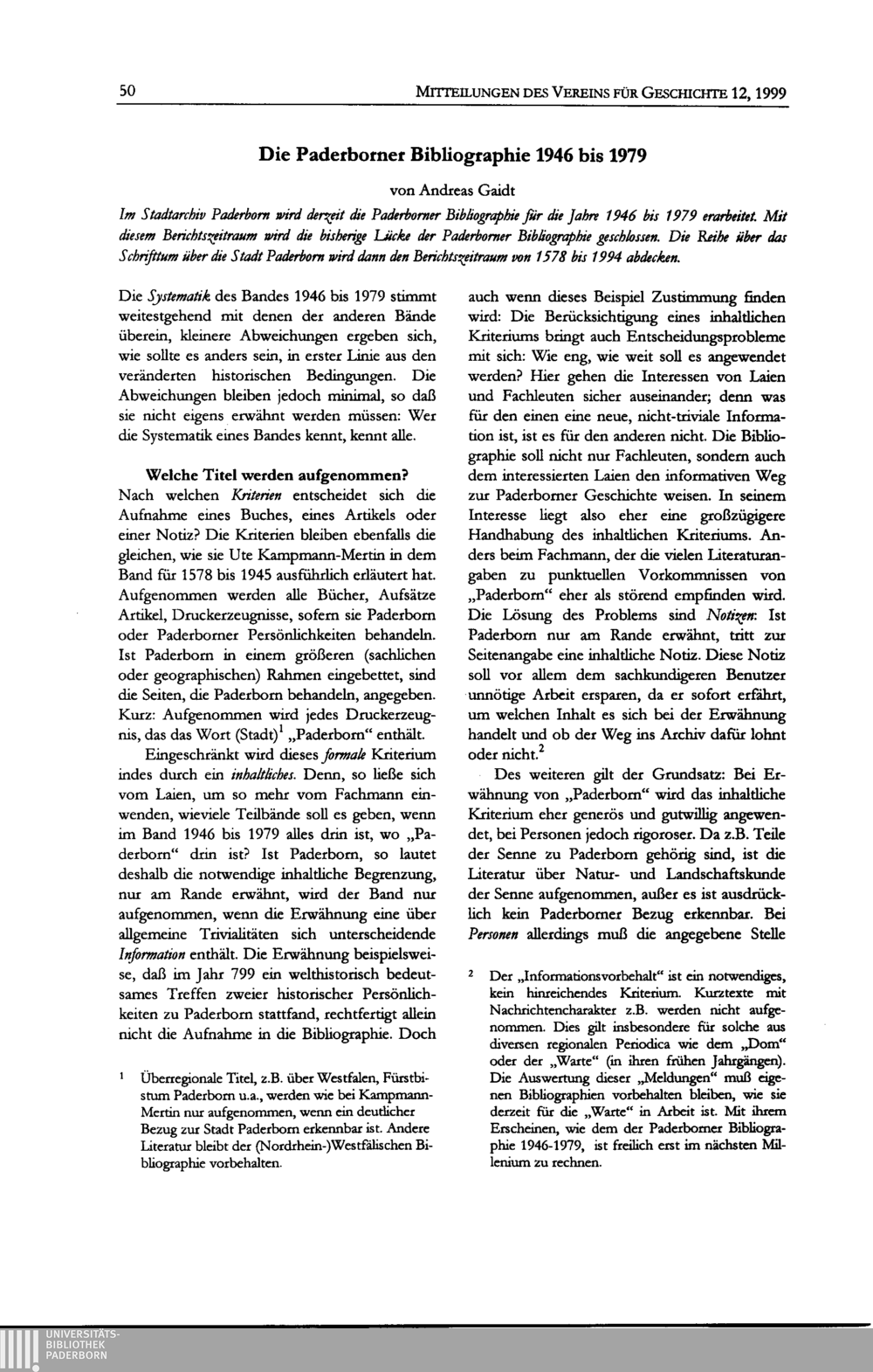 Andreas Gaidt, Die Paderborner Bibliographie 1946 bis 1979