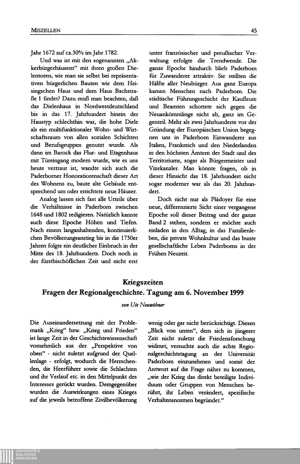 Ute Neuwöhner, Kriegszeiten. Fragen der Regionalgeschichte. Tagung am 6. November 1999