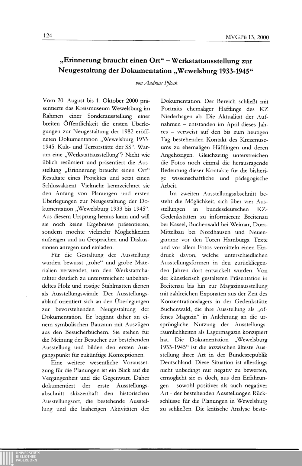 Andreas Pflock, "Erinnerung braucht einen Ort" - Werkstattausstellung zur Neugestaltung der Dokumentation "Wewelsburg 1933-1945"