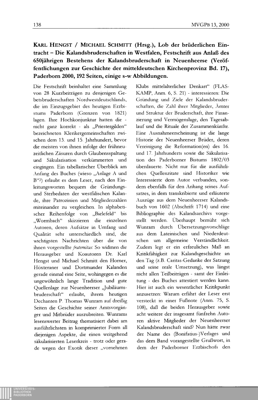 Mitteilungen des Vereins für Geschichte an der Universität-GH Paderborn