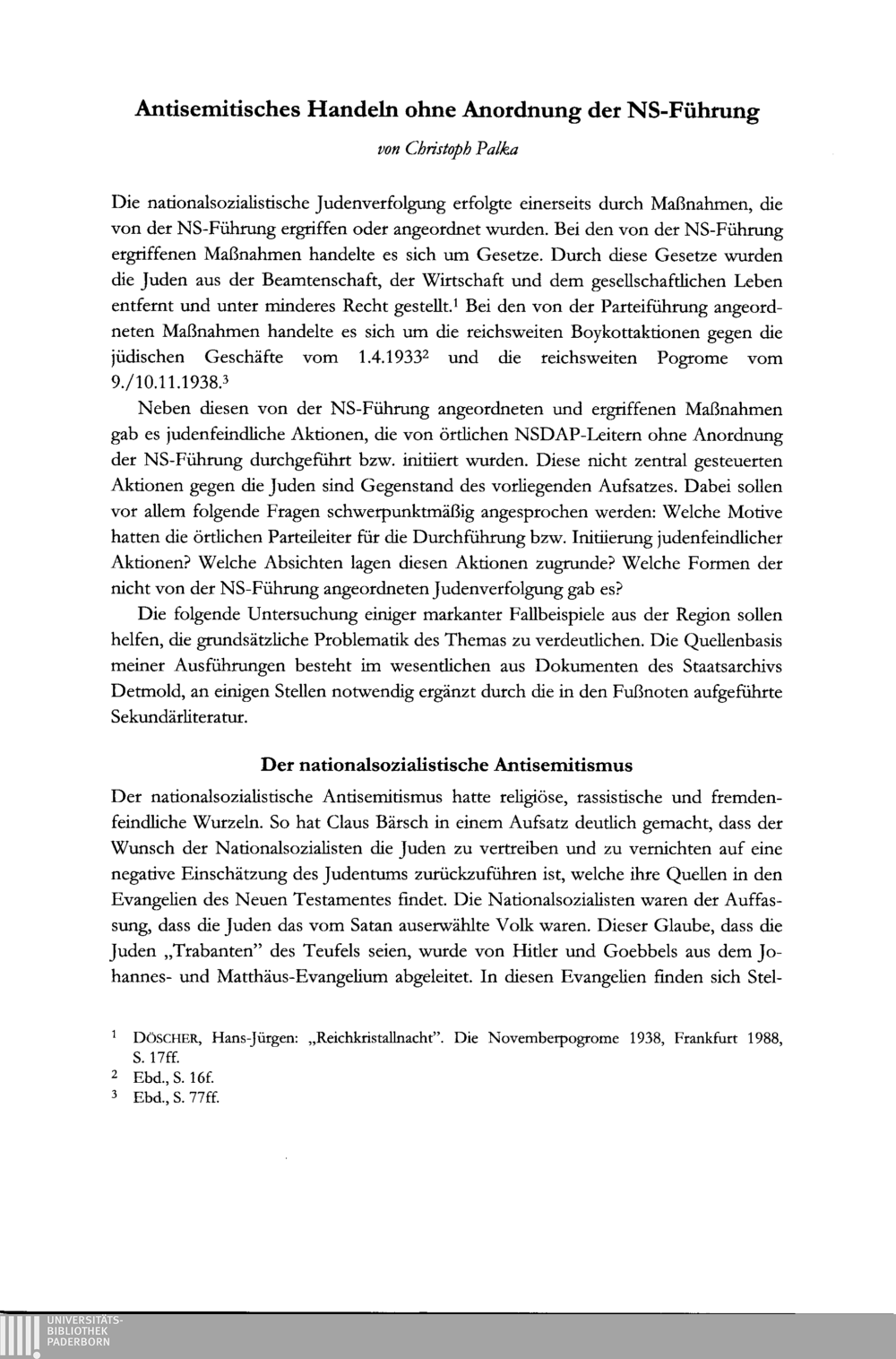 Christoph Palka, Antisemitisches Handeln ohne Anordnung der NS-Führung