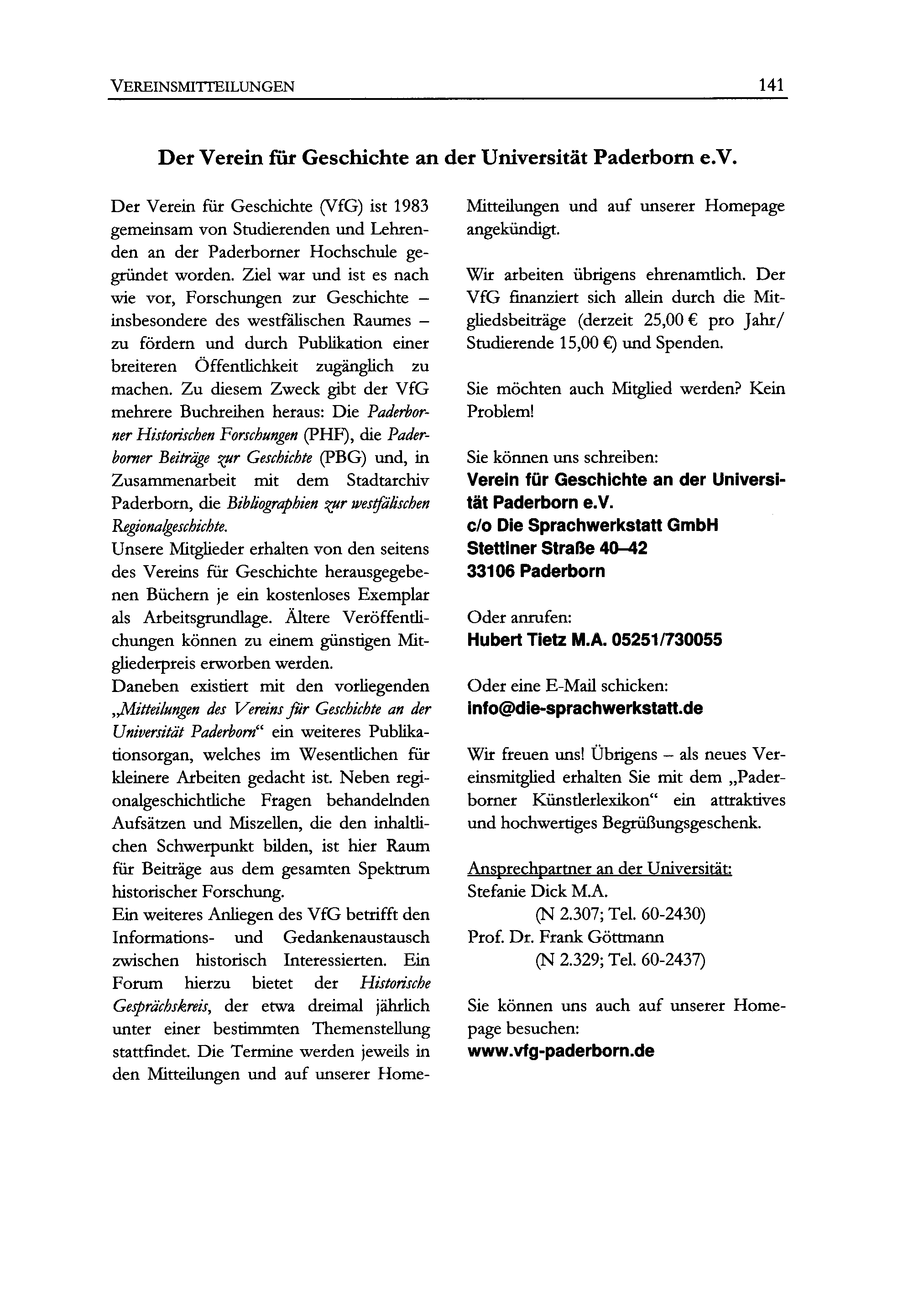 Mitteilungen des Vereins für Geschichte an der Universität Paderborn