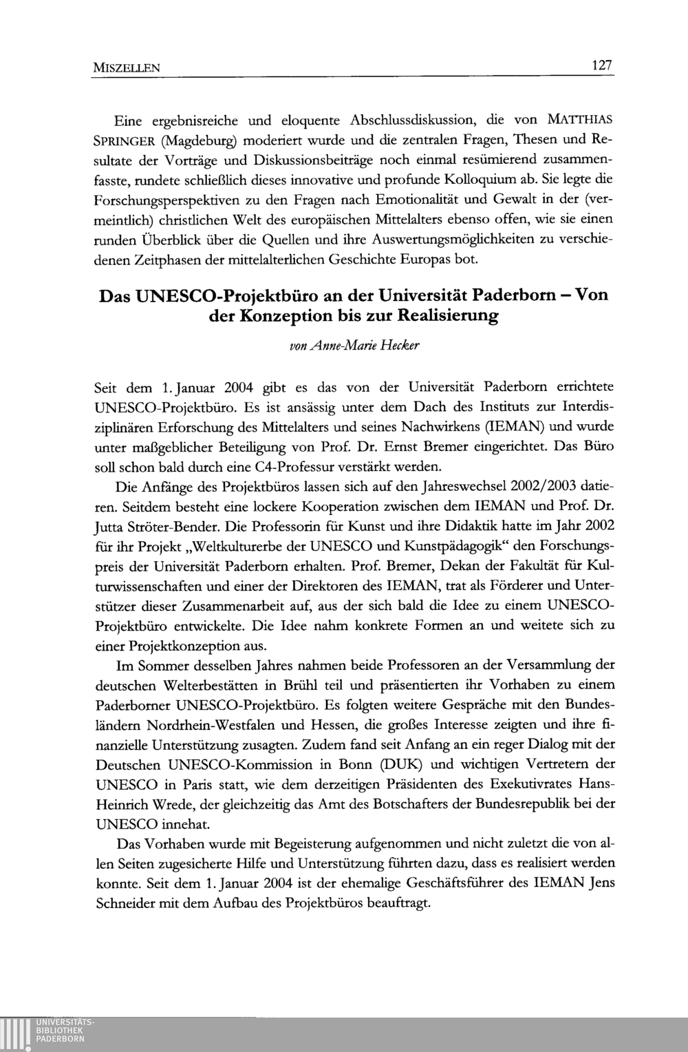 Anne-Marie Hecker, Das UNESCO-Projektbüro an der Universität Paderborn - Von der[...]