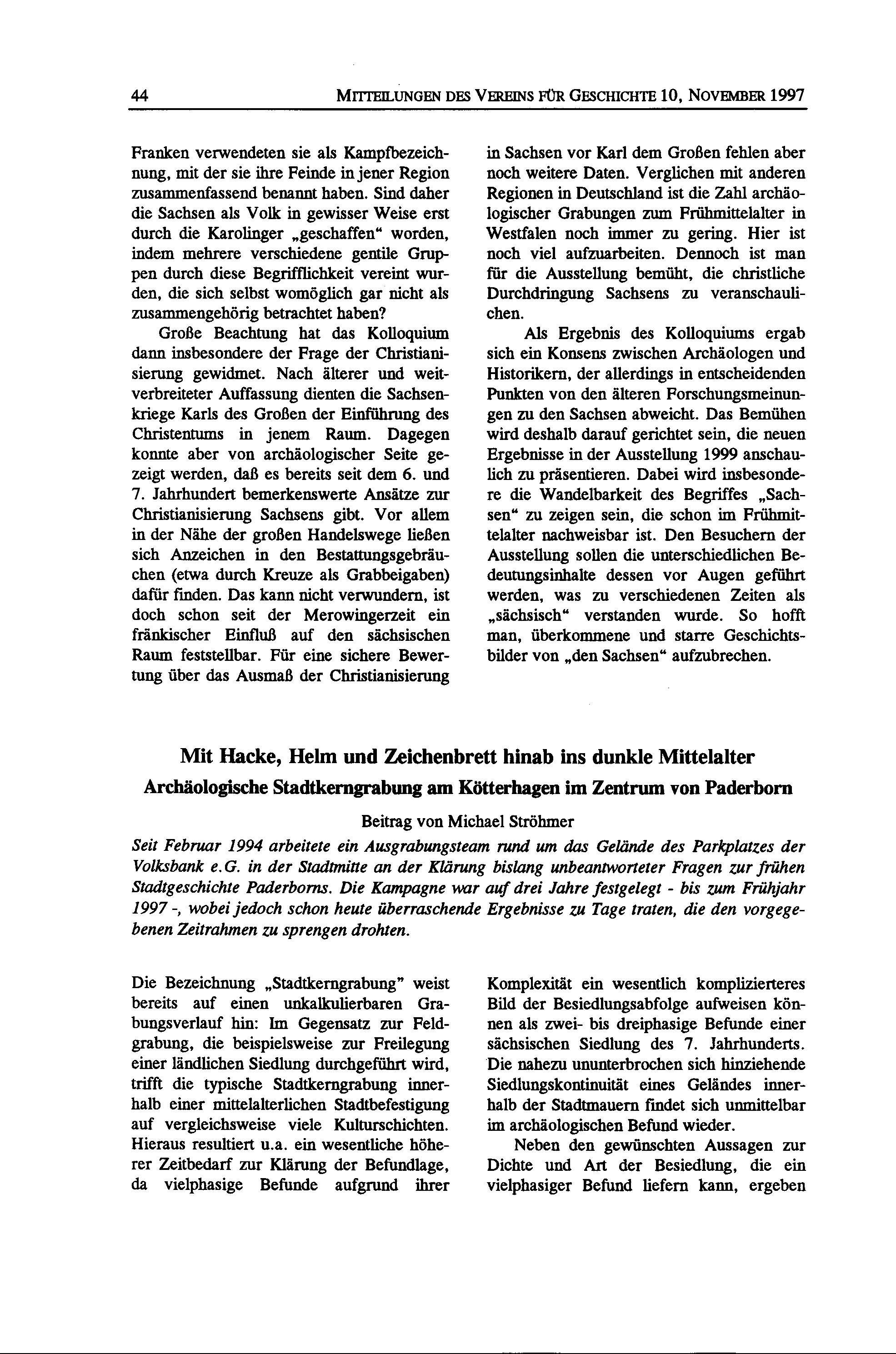 Michael Ströhmer, Mit Hacke, Helm und Zeichenbrett hinab ins dunkle Mittelalter. Archäologische Stadtkerngrabung am Kötterhagen im Zentrum von Paderborn
