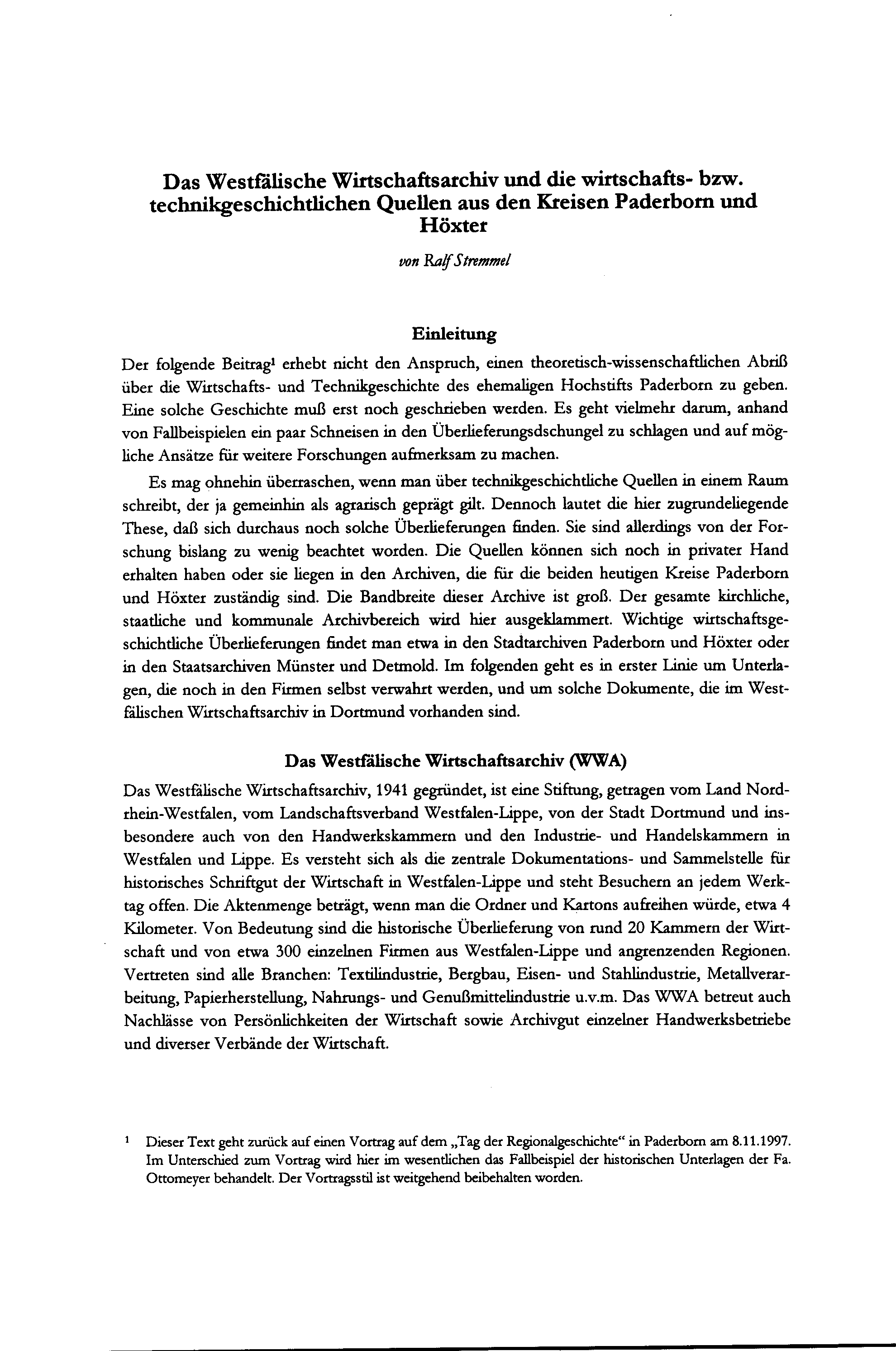 Ralf Stremmel, Das westfälische Wirtschaftsarchiv und die wirtschafts- bzw. technikgeschichtlichen[...]