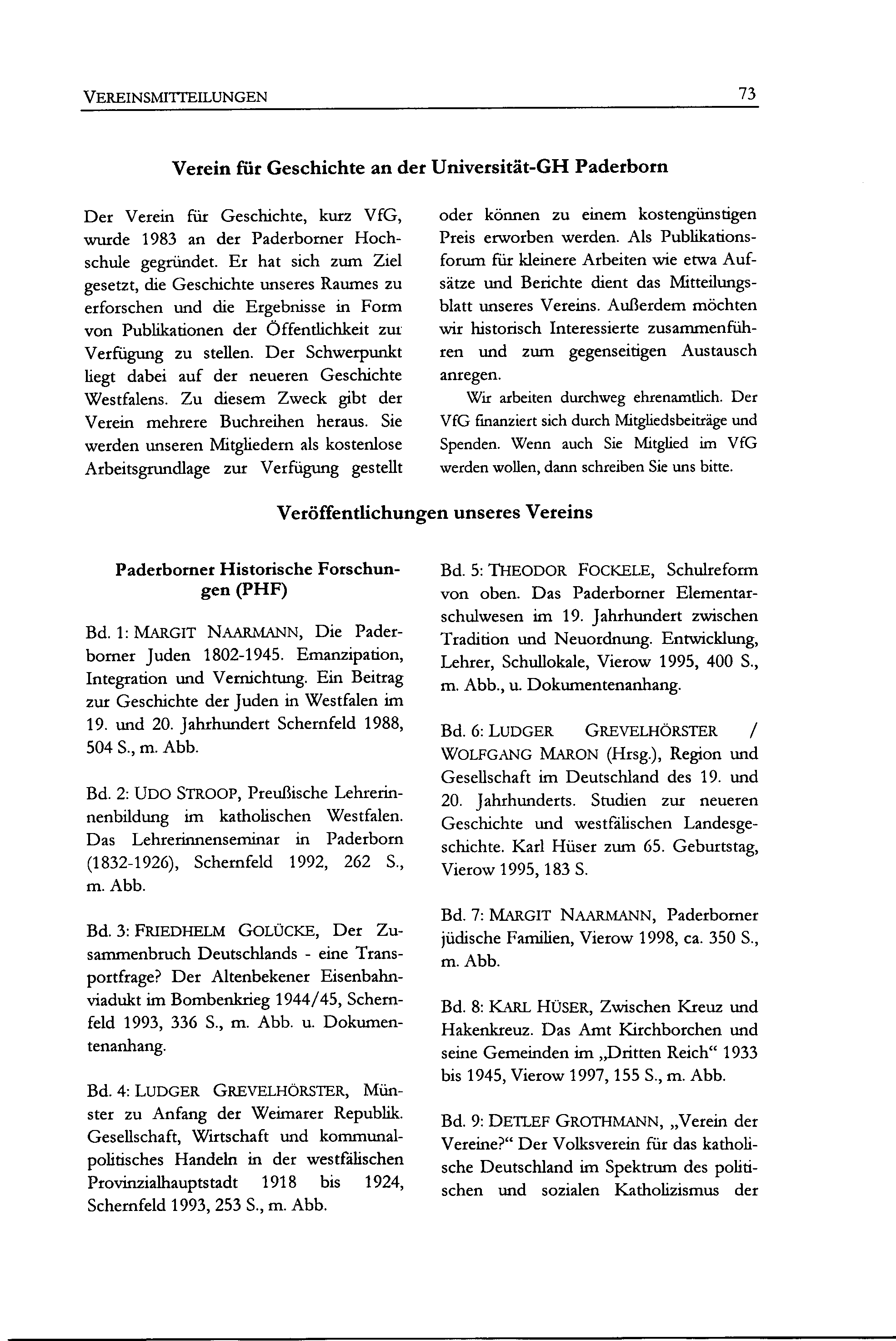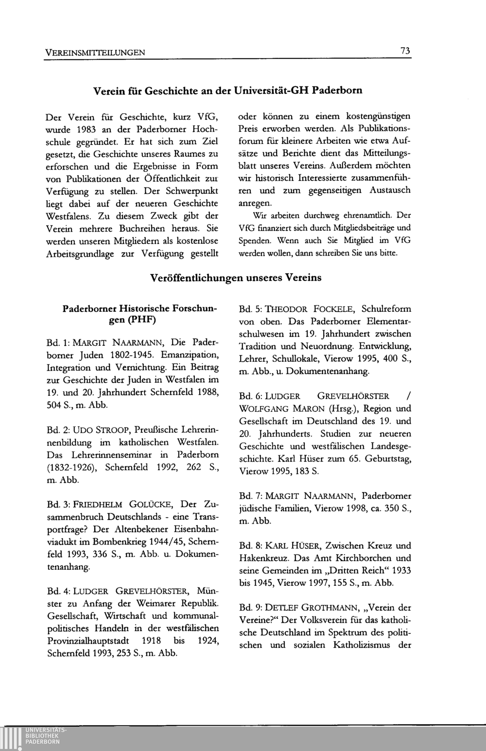 Mitteilungen des Vereins für Geschichte an der Universität-GH Paderborn