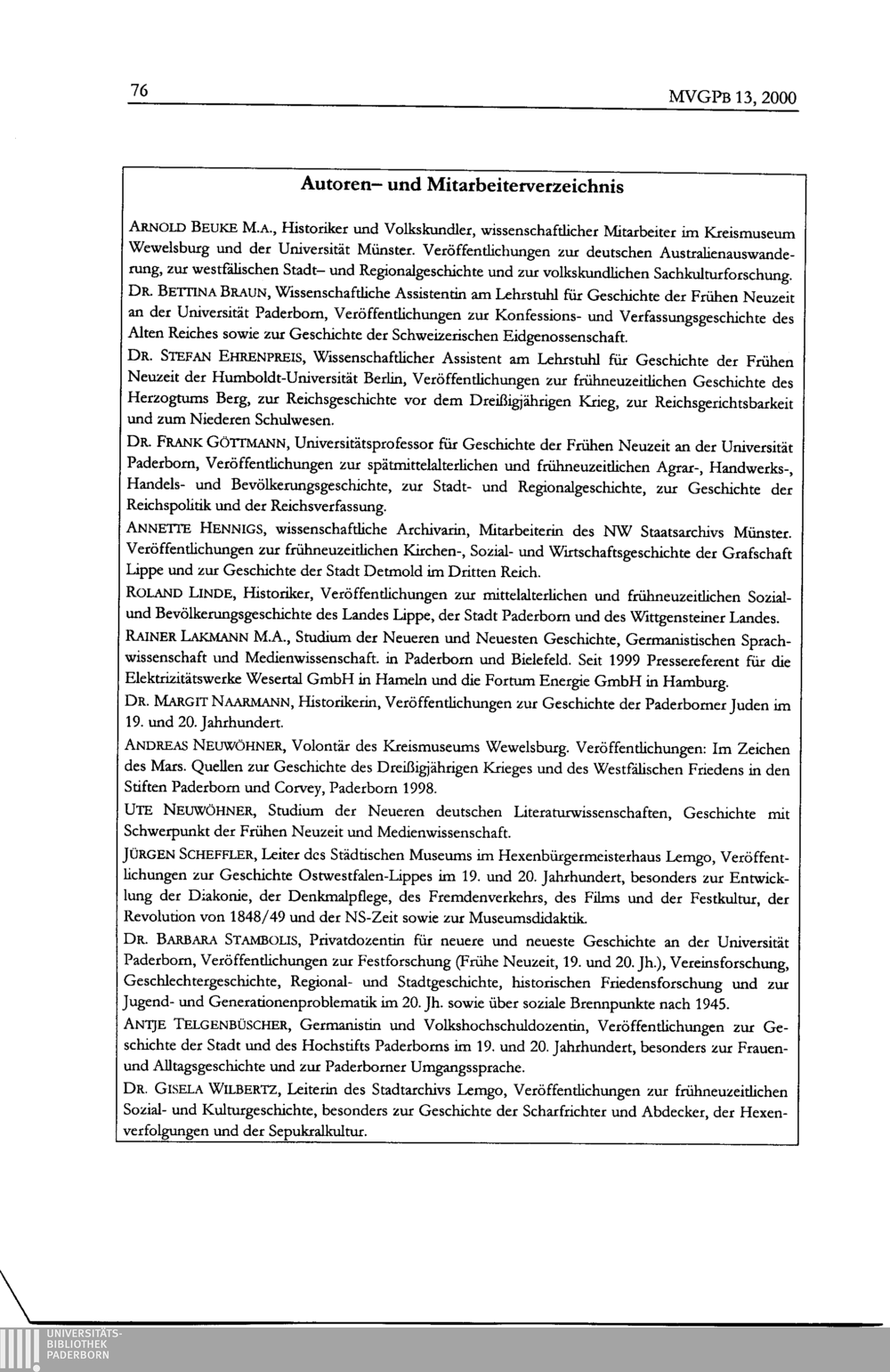 Mitteilungen des Vereins für Geschichte an der Universität-GH Paderborn