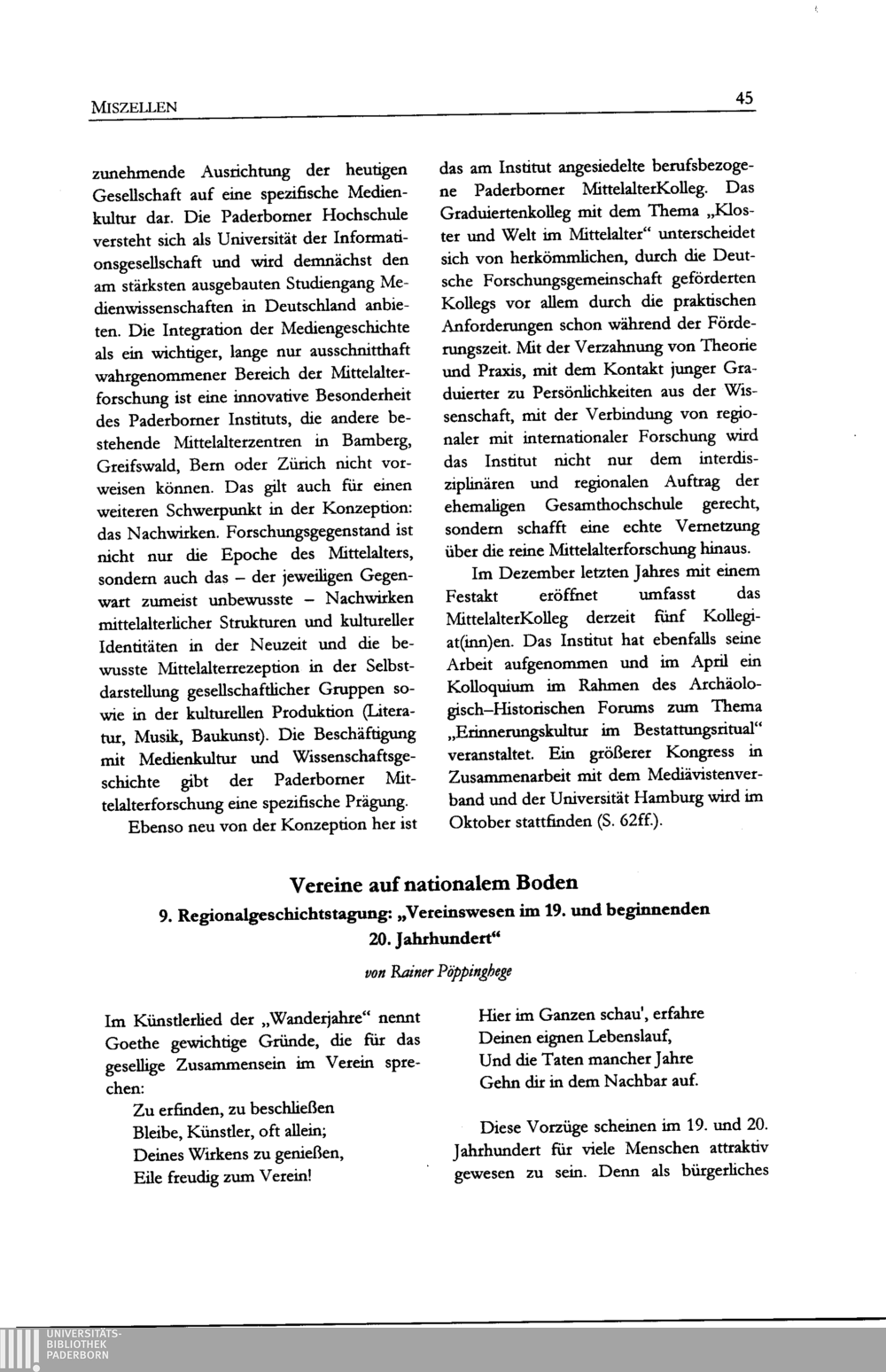Mitteilungen des Vereins für Geschichte an der Universität Paderborn