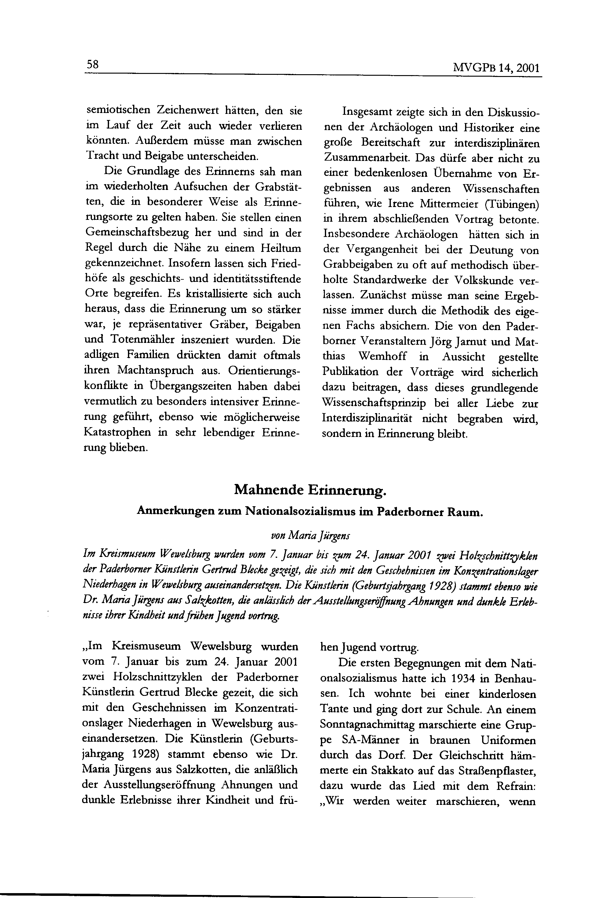 Maria Jürgens, Mahnende Erinnerung. Anmerkungen zum Nationalsozialismus im Paderborner Raum