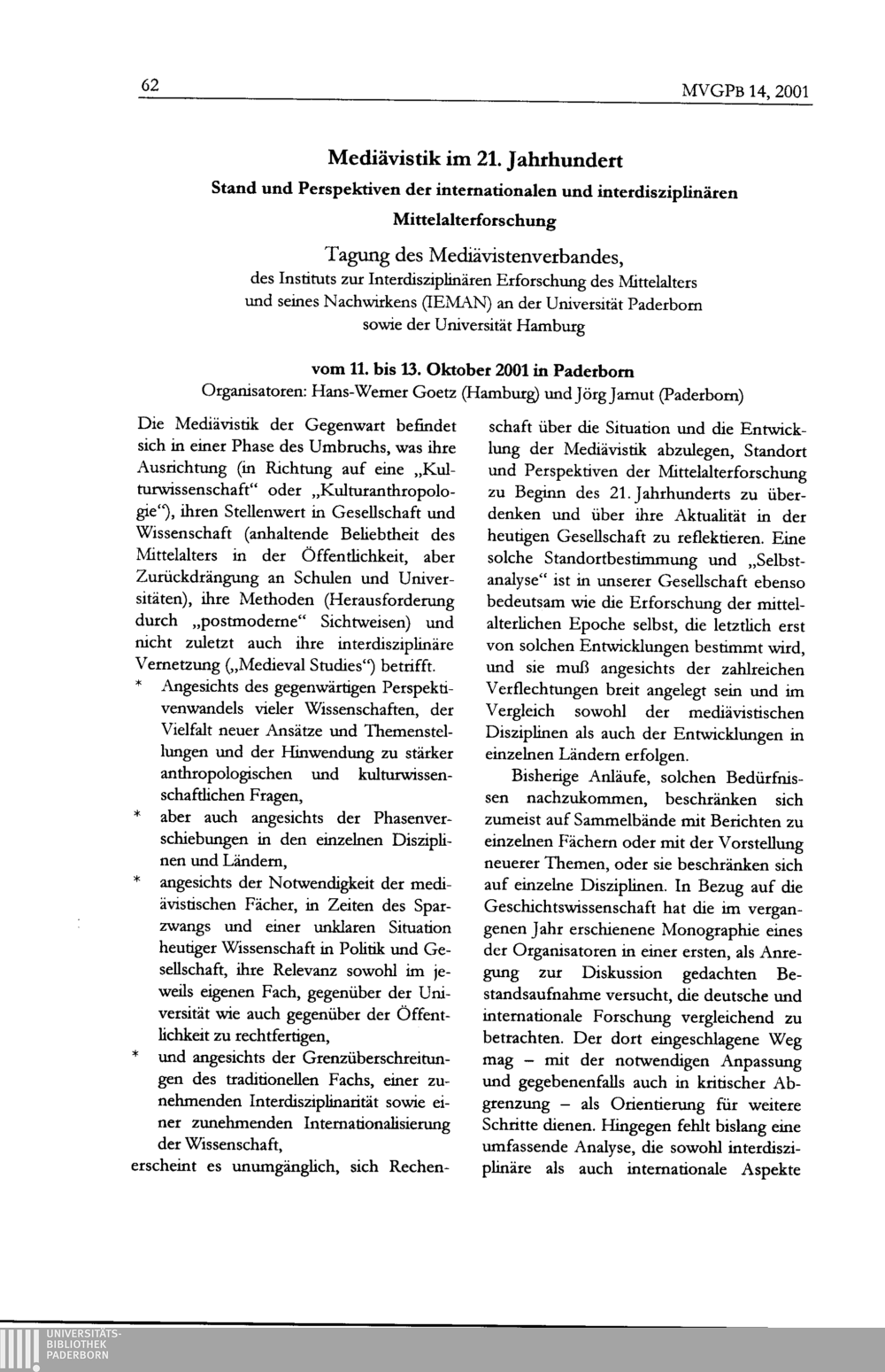Mitteilungen des Vereins für Geschichte an der Universität Paderborn
