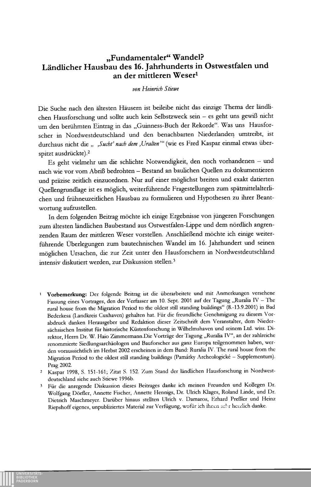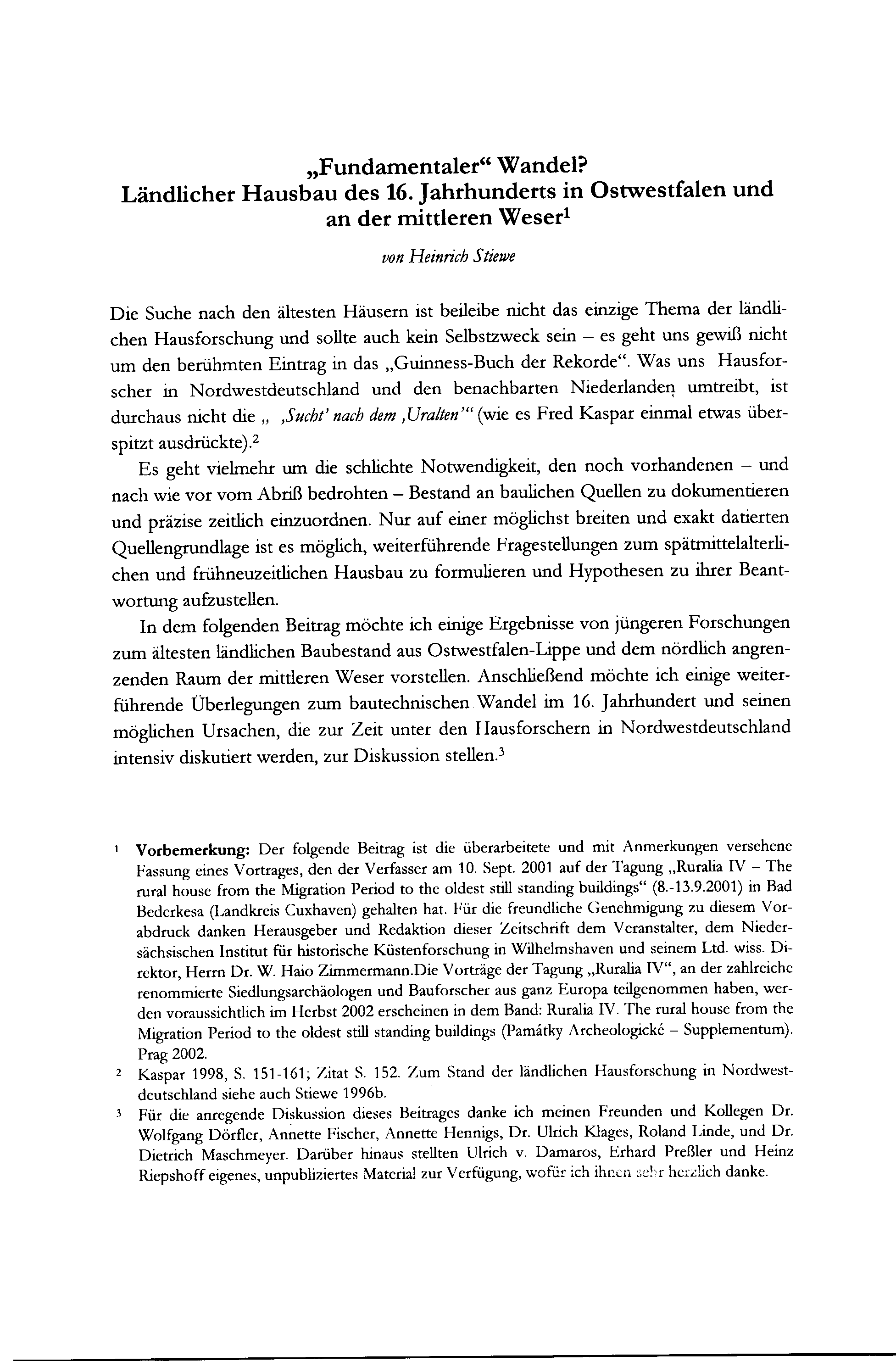 Heinrich Stiewe, "Fundamentaler" Wandel? Ländlicher Hausbau des 16. Jahrhunderts in Ostwestfalen und an der mittleren Weser