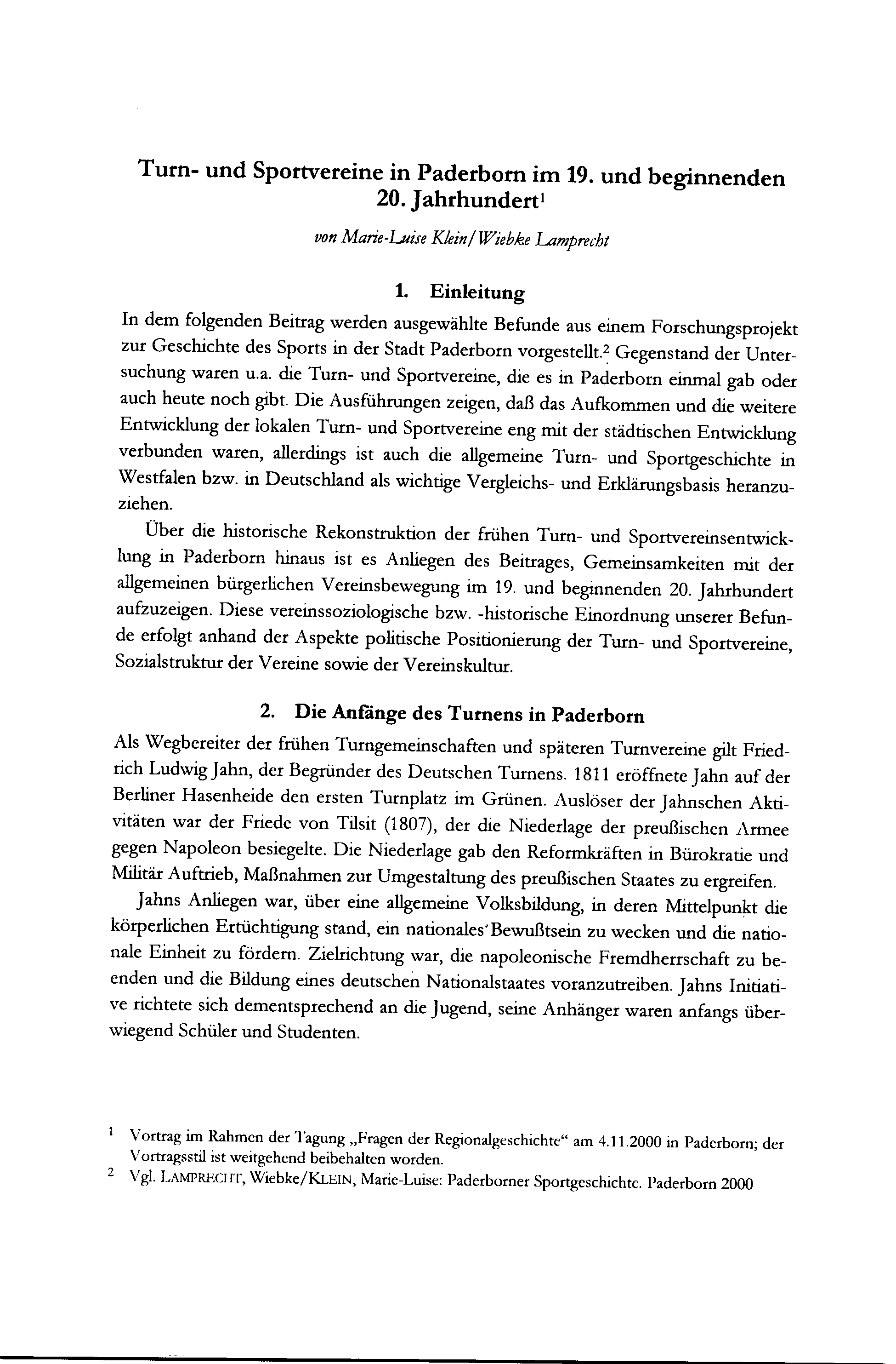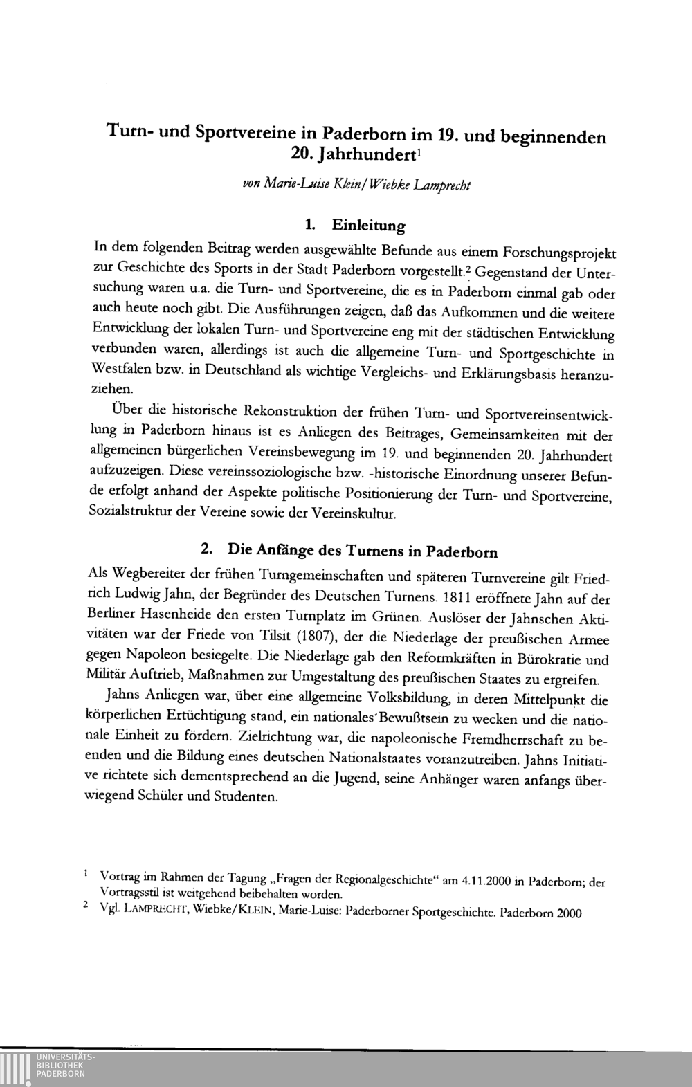 Marie-Luise Klein/Wiebke Lamprecht, Turn- und Sportvereine in Paderborn im 19. und[...]