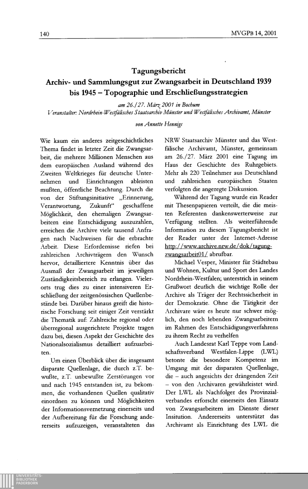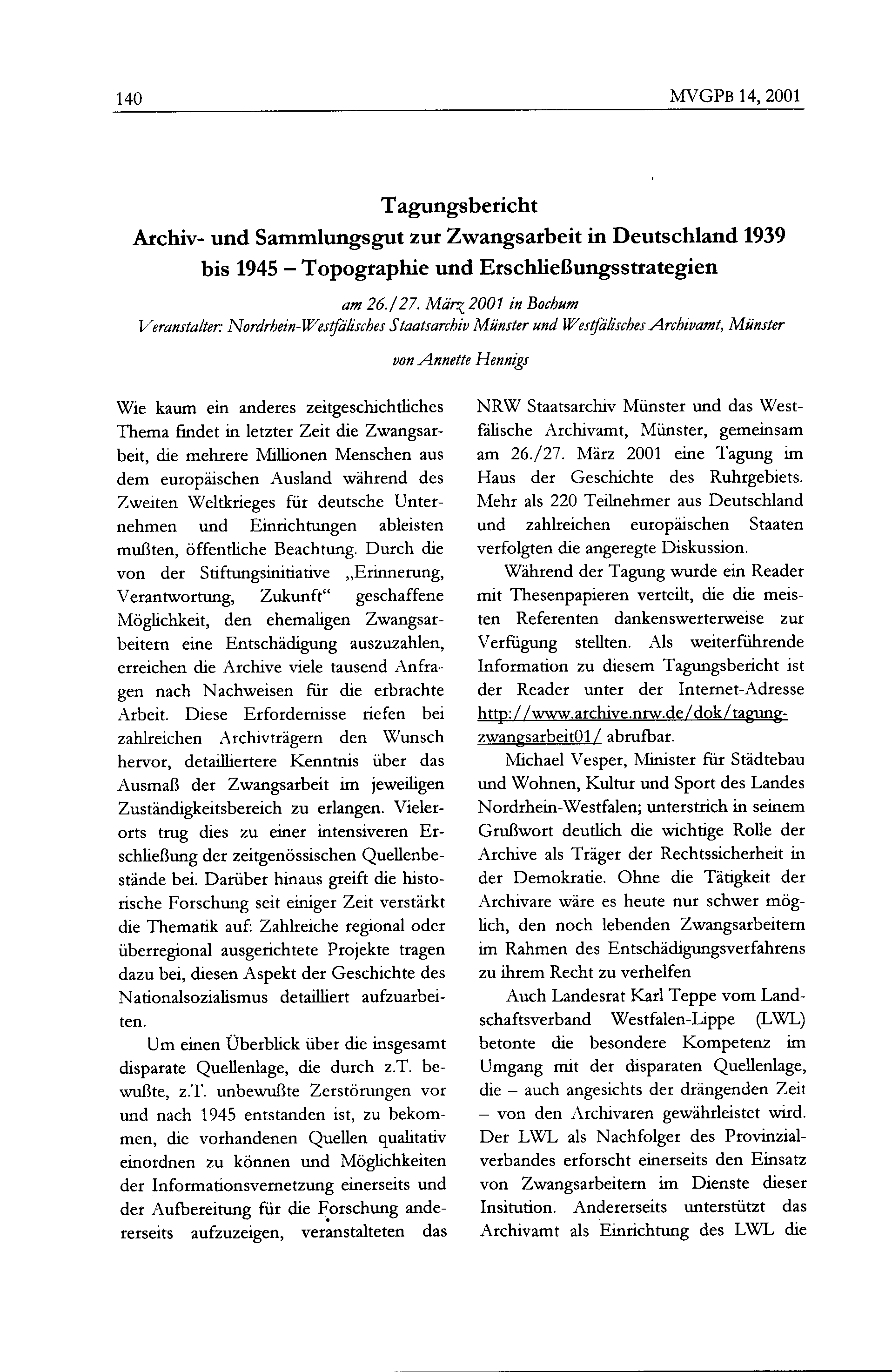 Annette Hennigs, Tagungsbericht Archiv- und Sammlungsgut zur Zwangsarbeit in Deutschland 1939 bis 1945 - Topographie und Erschließungsstrategien