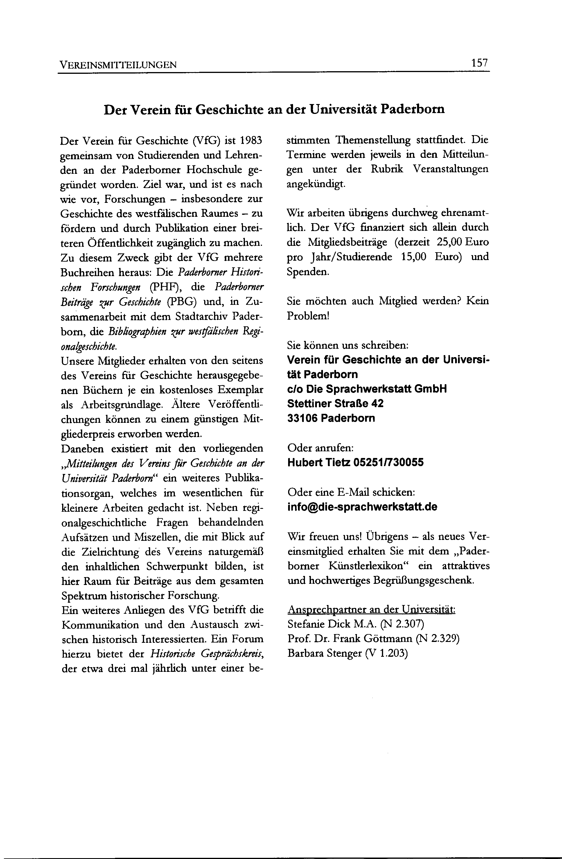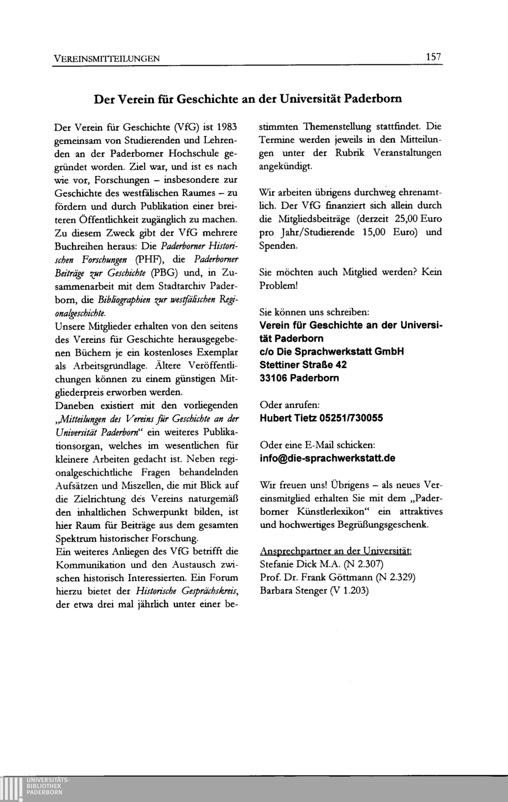 Mitteilungen des Vereins für Geschichte an der Universität Paderborn