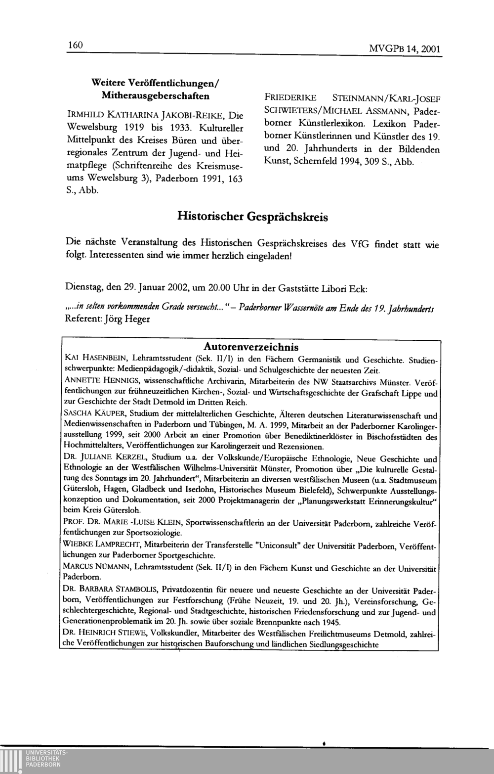Mitteilungen des Vereins für Geschichte an der Universität Paderborn