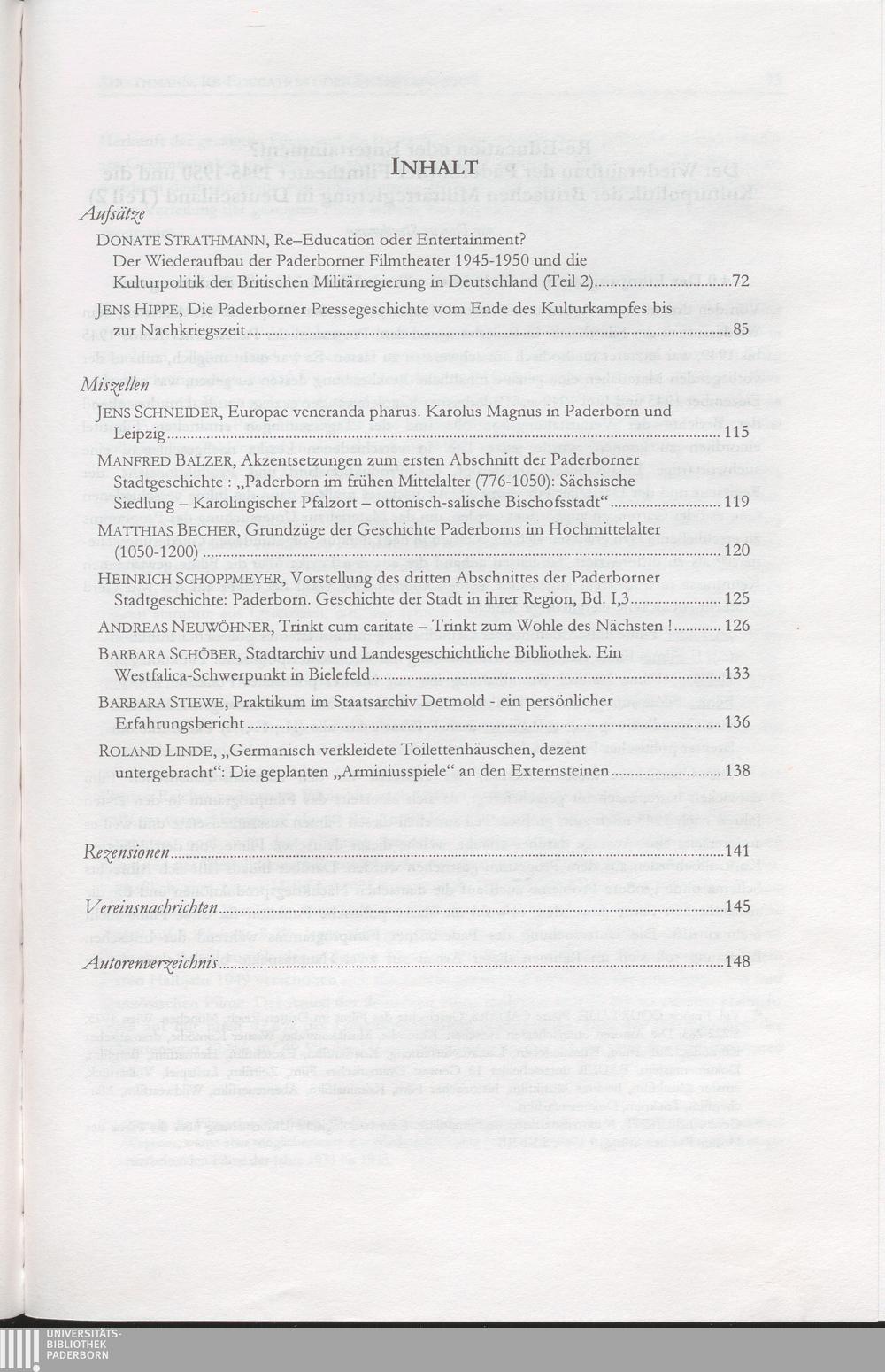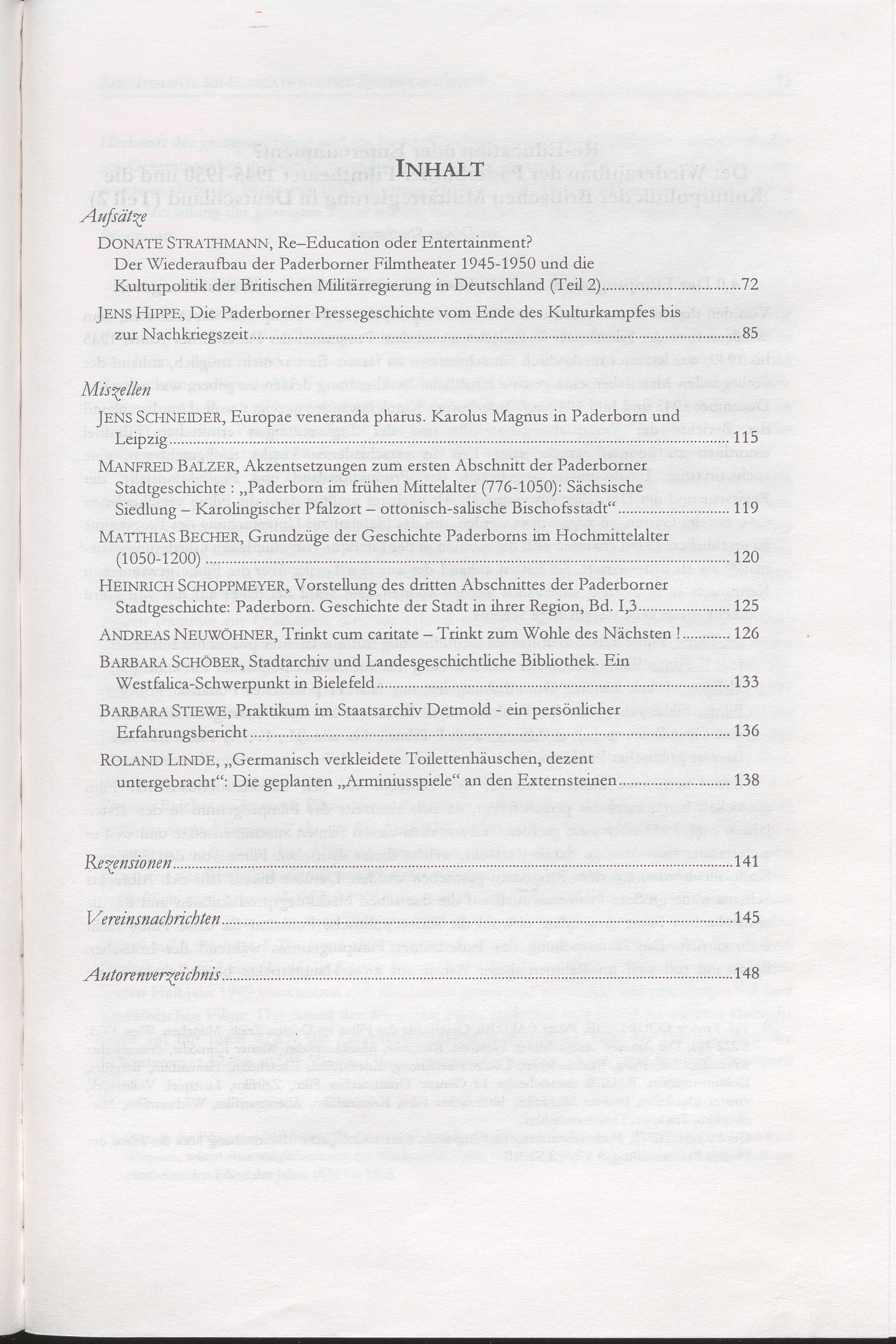 Donate Strathmann, Re-Education oder Entertainment? Der Wiederaufbau der Paderborner Filmtheater 1945-1950 und die Kulturpolitik der Britischen Militärregierung (Teil 2)