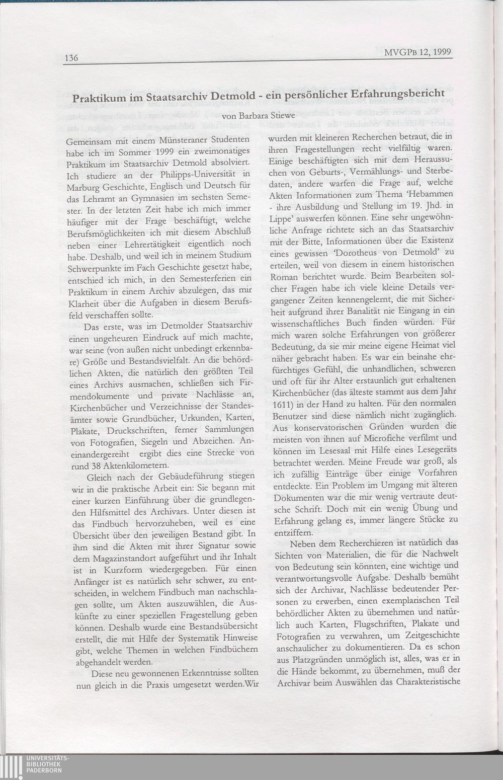 Barbara Stiewe, Praktikum im Staatsarchiv Detmold - ein persönlicher Erfahrungsb[...]