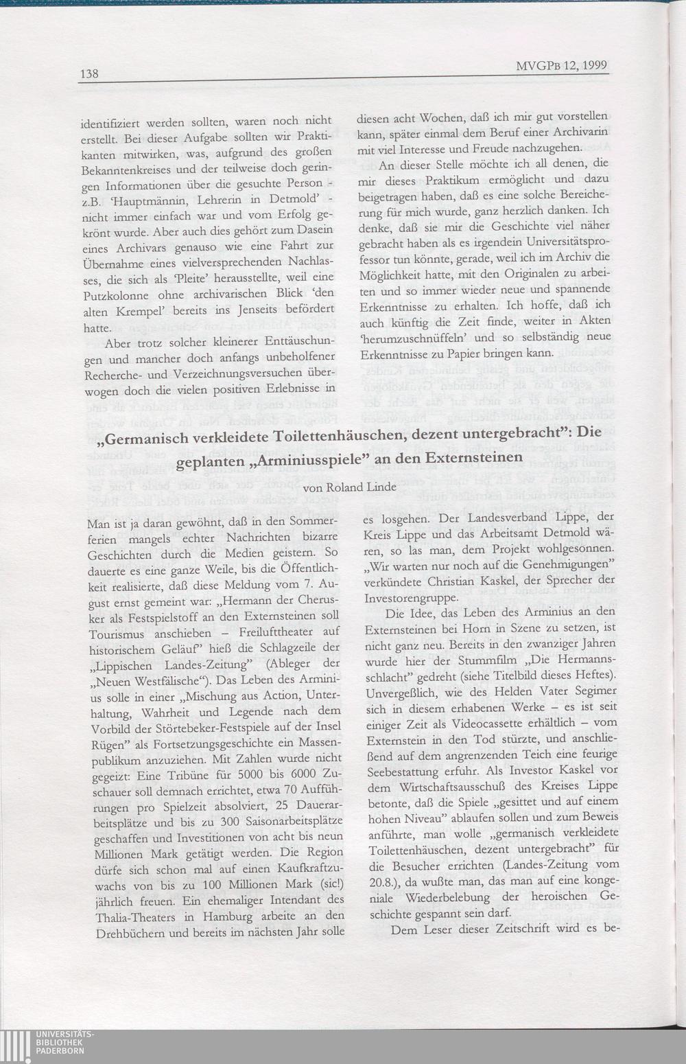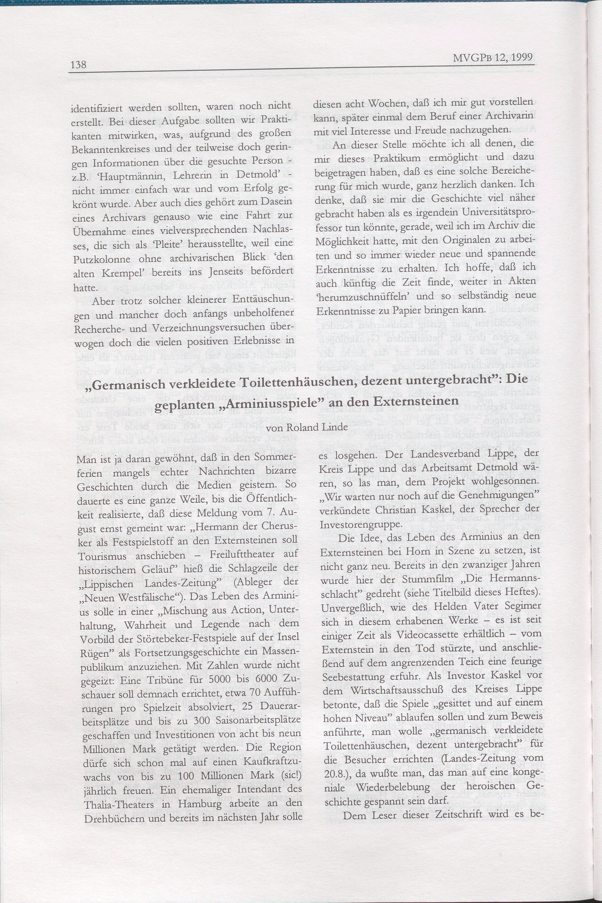 Roland Linde, "Germanisch verkleidetet Toilettenhäuschen, dezent untergebracht": Die geplanten "Arminiusspiele" an den Externsteinen