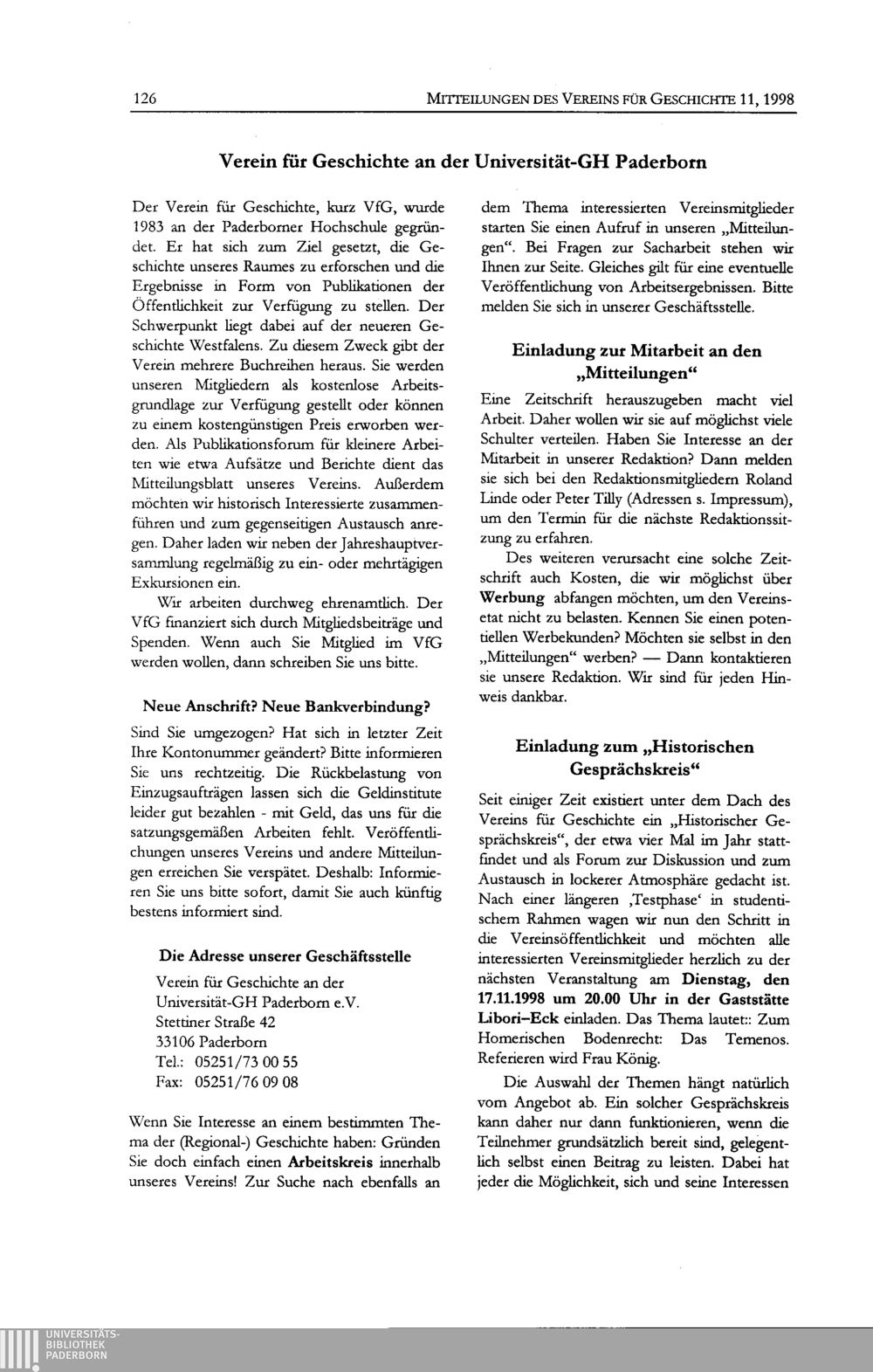 Mitteilungen des Vereins für Geschichte an der Universität-GH Paderborn
