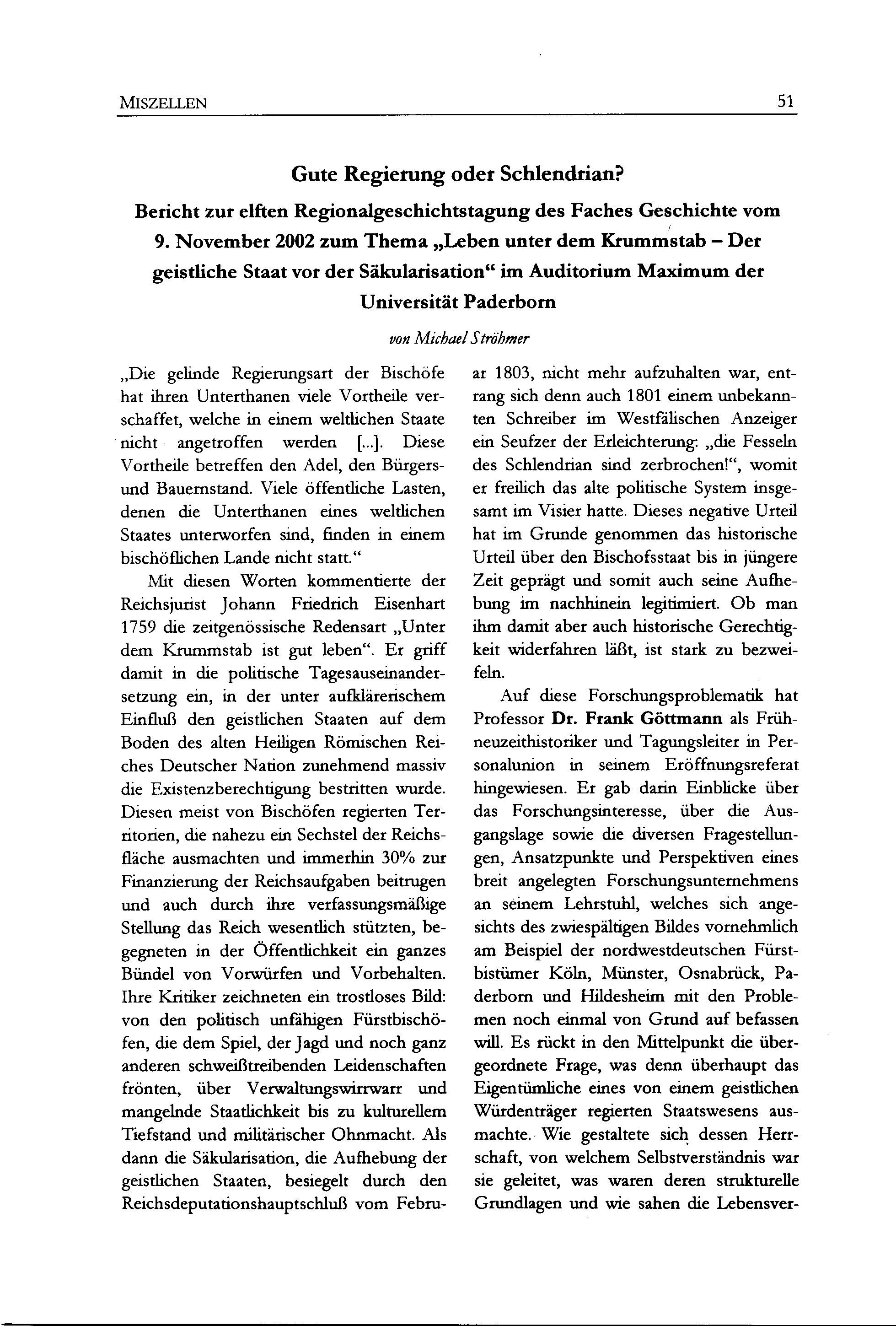 Michael Ströhmer, Gute Regierung oder Schlendrian? Bericht zur elften Regionalgeschichtstagung