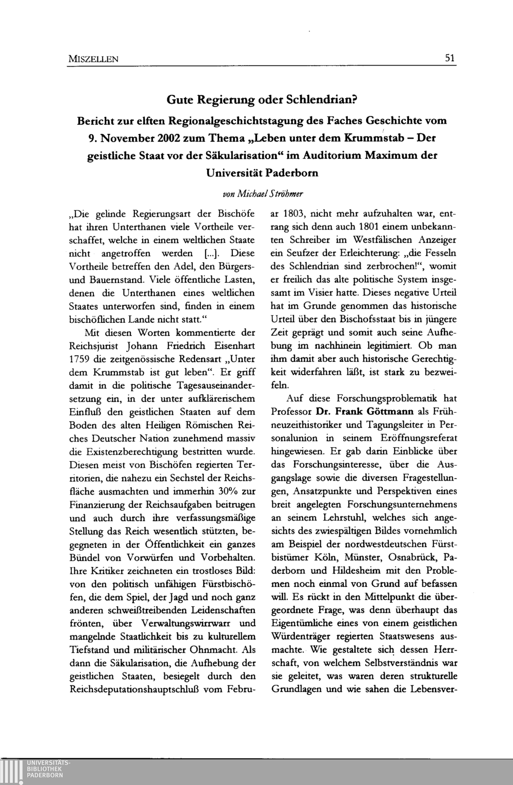 Michael Ströhmer, Gute Regierung oder Schlendrian? Bericht zur elften Regionalge[...]