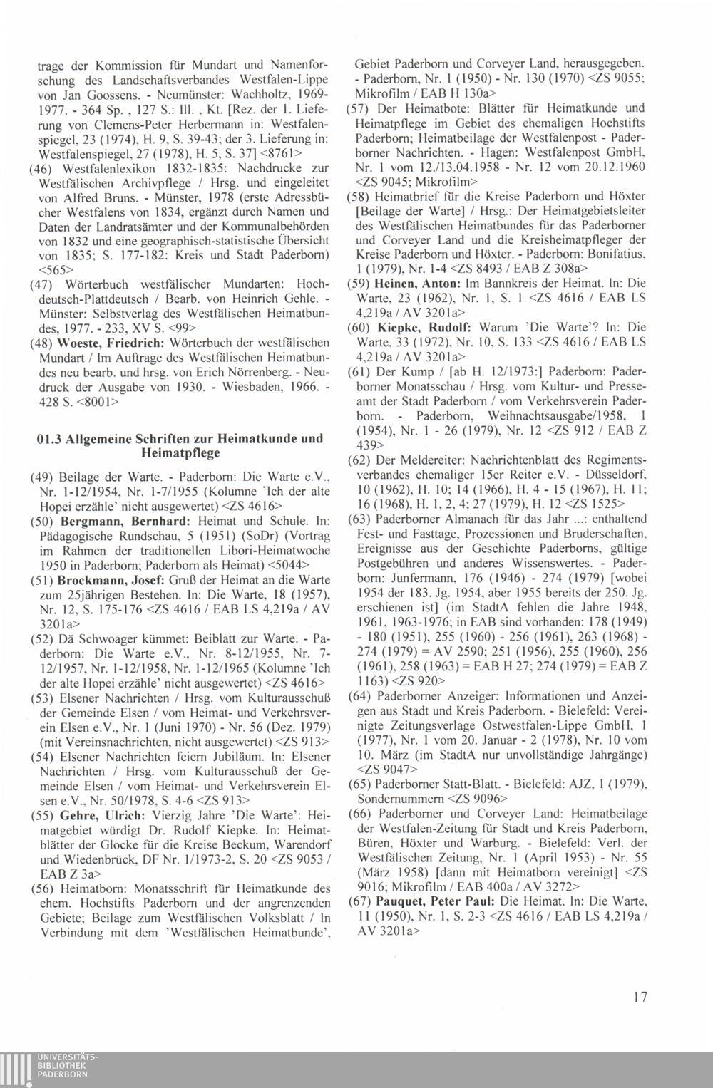 Paderborner Bibliographie ...