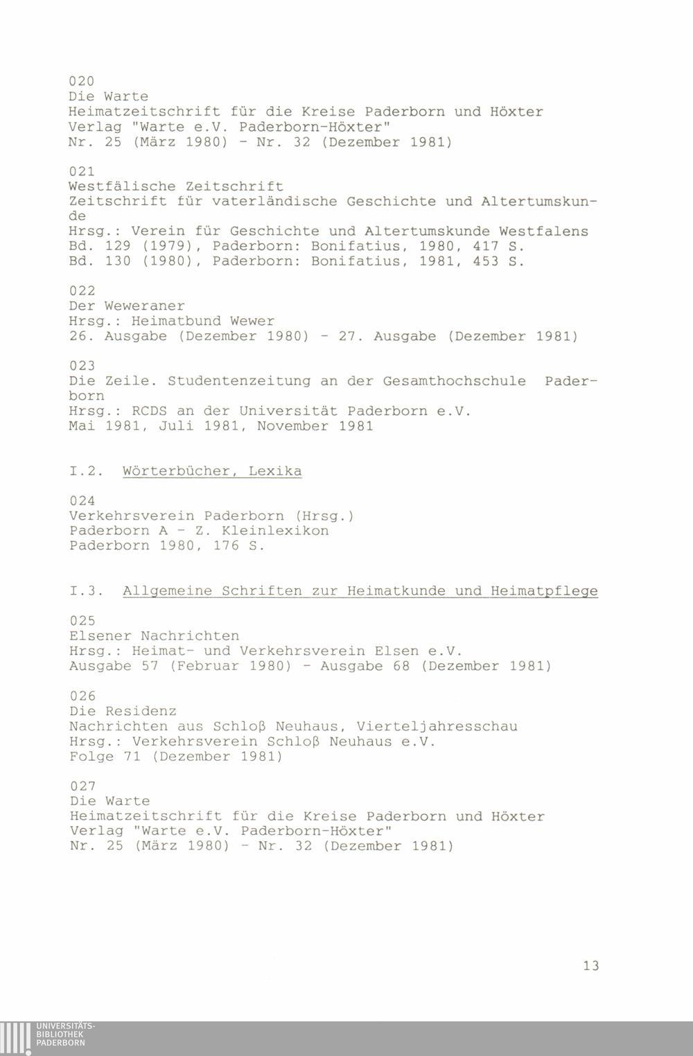 Paderborner Bibliographie ...