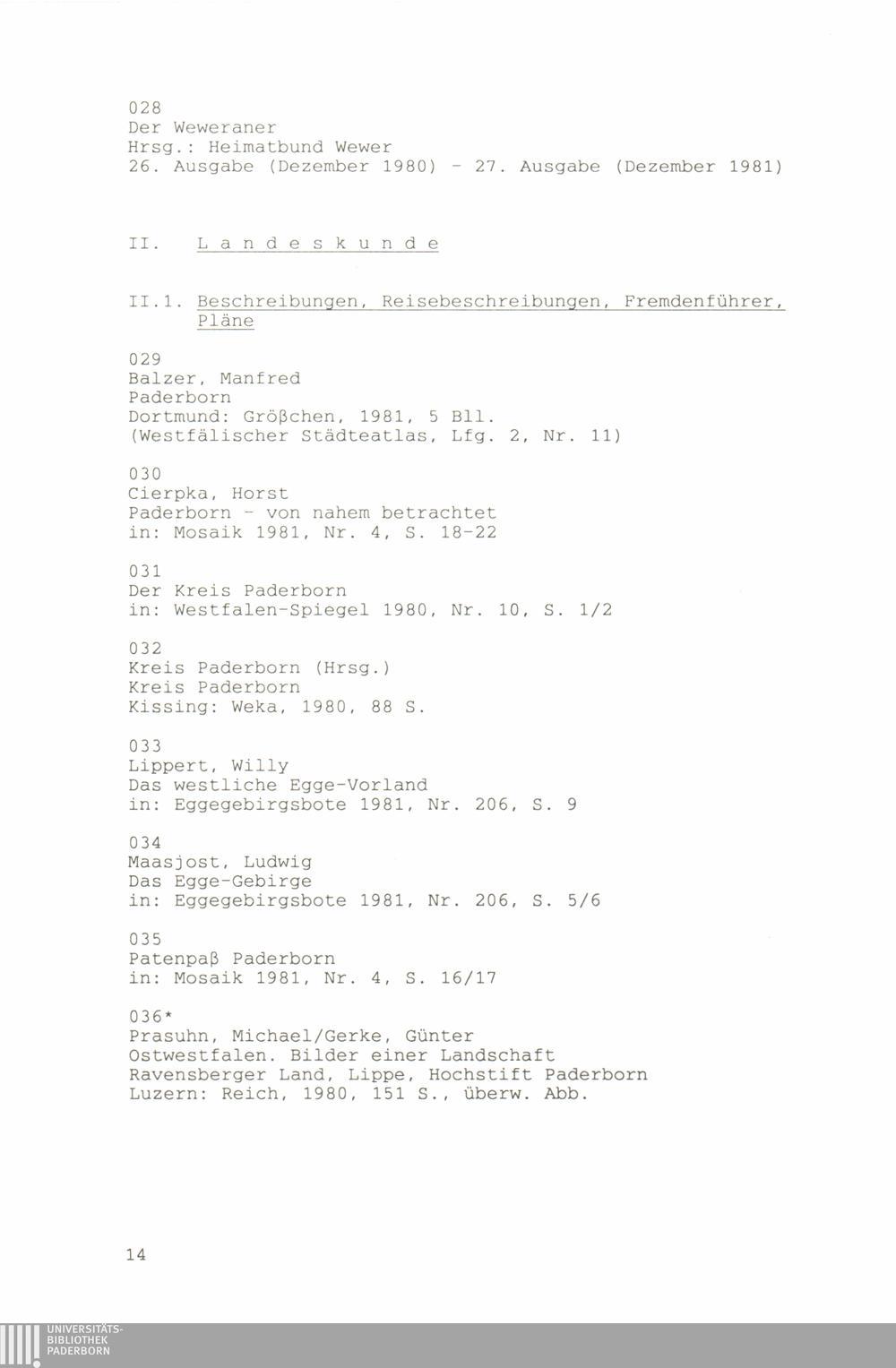 Paderborner Bibliographie ...