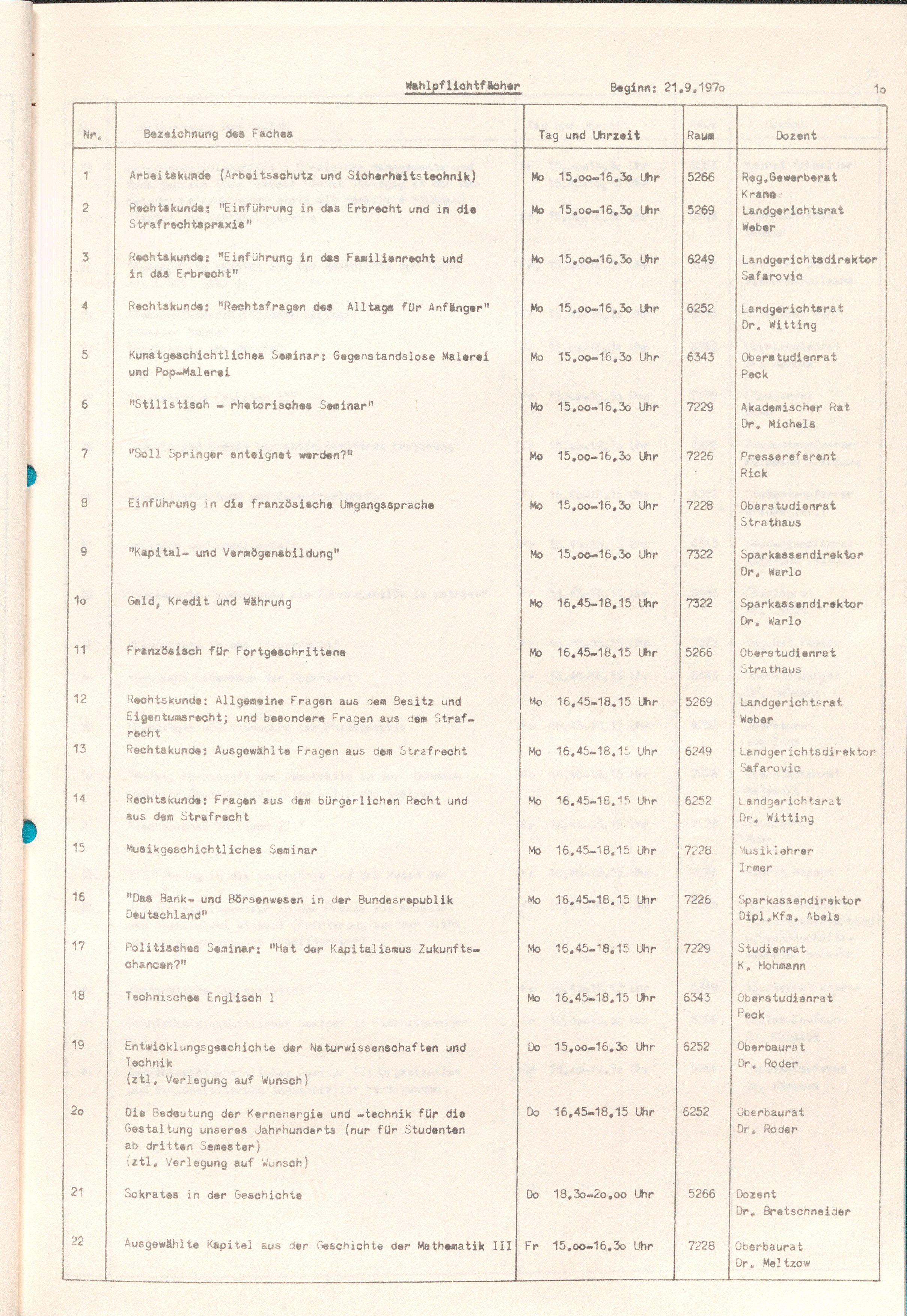 Wintersemester 1970/71