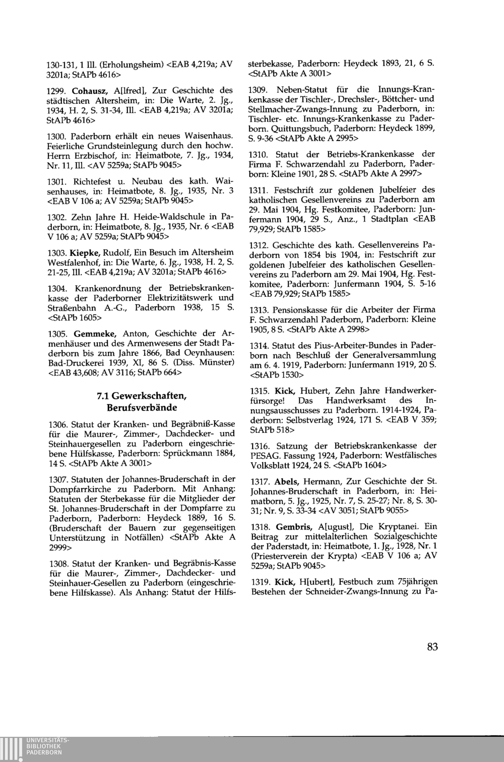 Paderborner Bibliographie ...