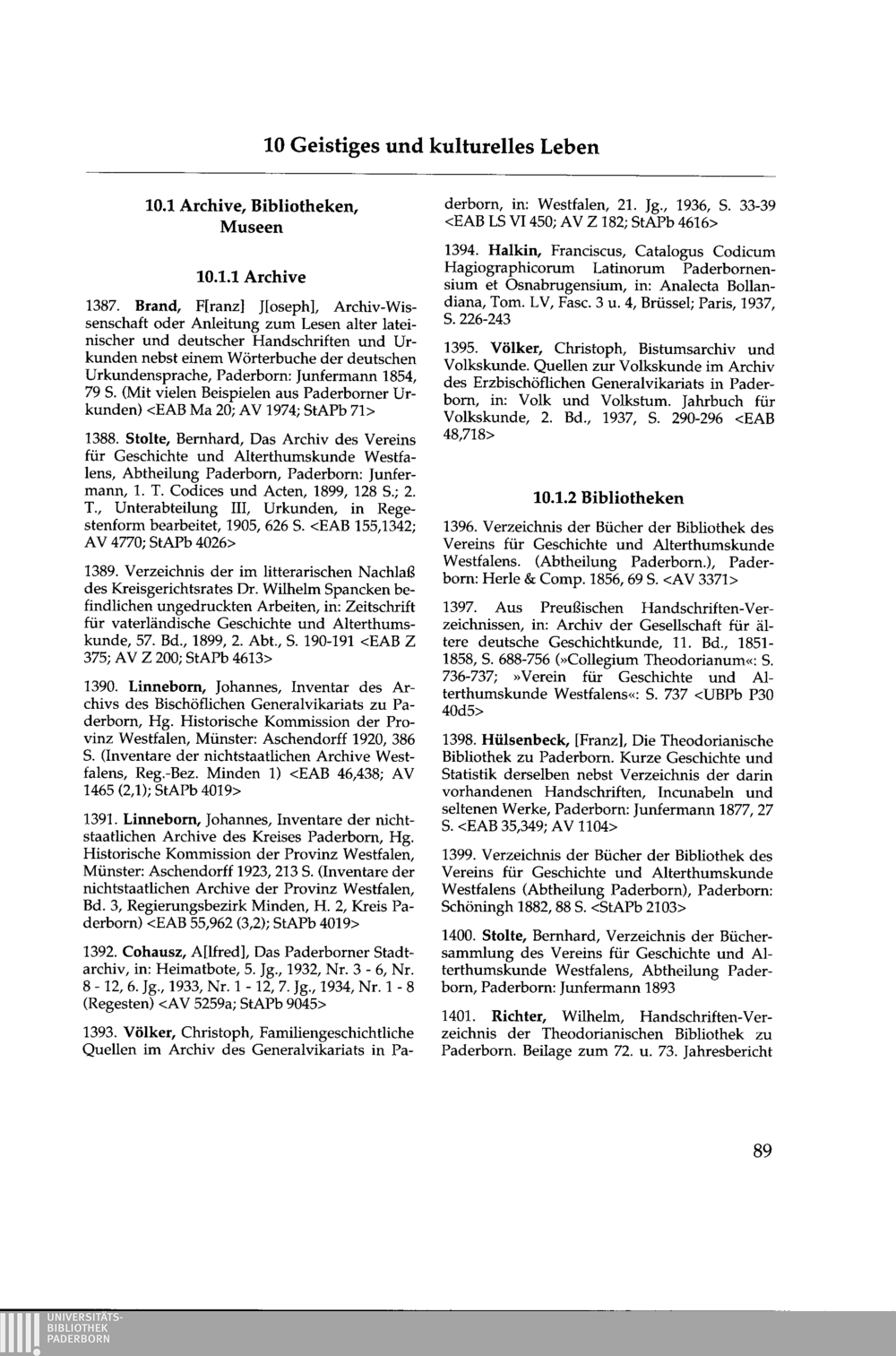 10.1 Archive, Bibliotheken, Museen