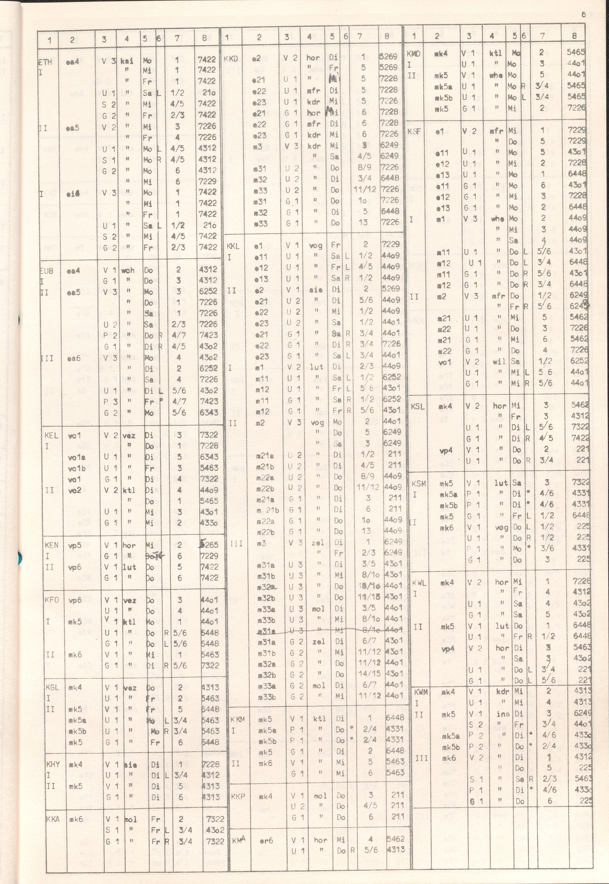 Abkürzungen der Fächer