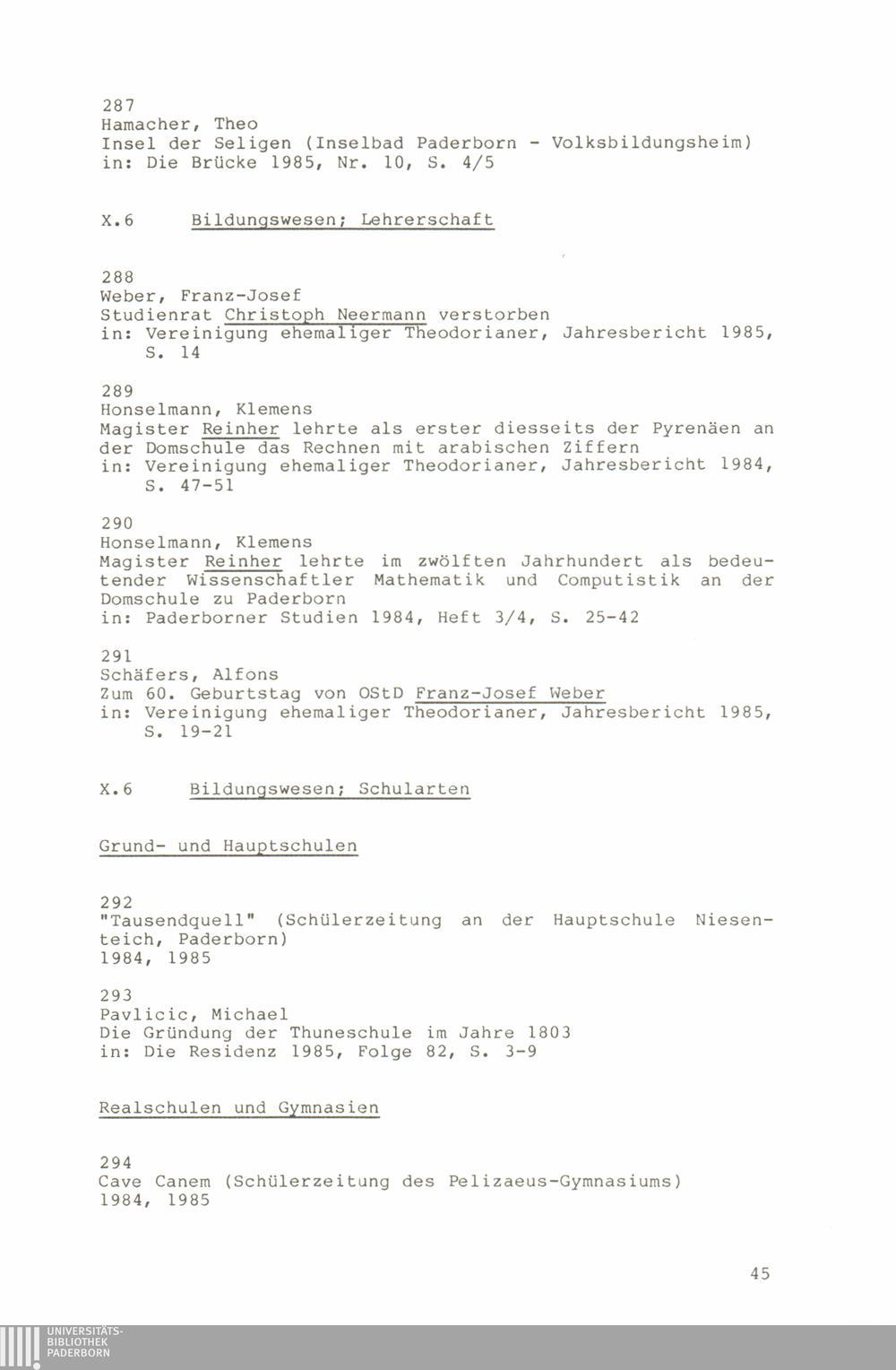 Paderborner Bibliographie ...