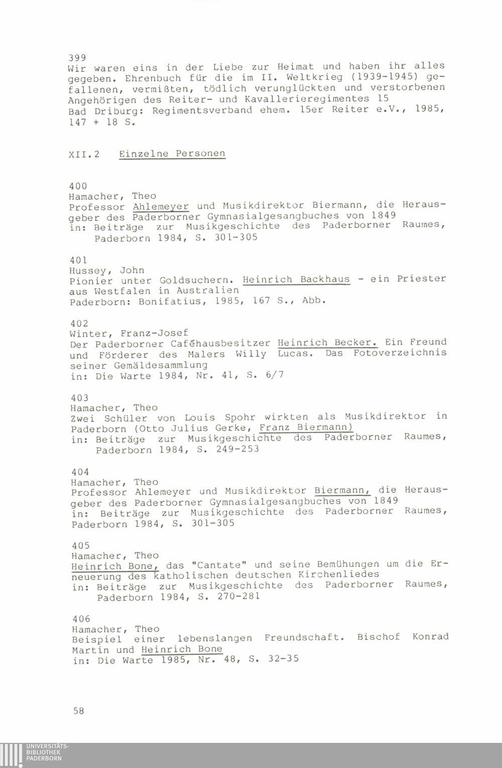 Paderborner Bibliographie ...
